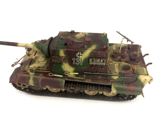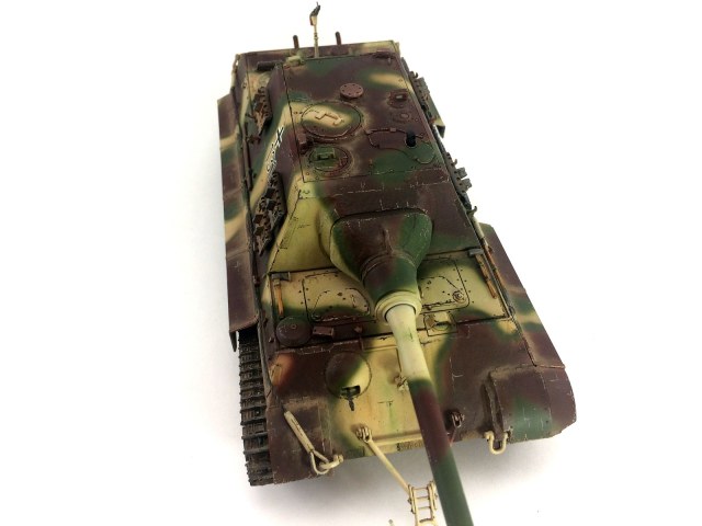 Добрый день. Коллеги, хочу показать вам свою недавно законченную работу.Ягдтигр от фирмы Драгон.Набор мне не очень понравился,весь был какой-то кривой и косой с кучей щелей.Незнаю почему так,то ли старый он.А может руки кривые просто)))
