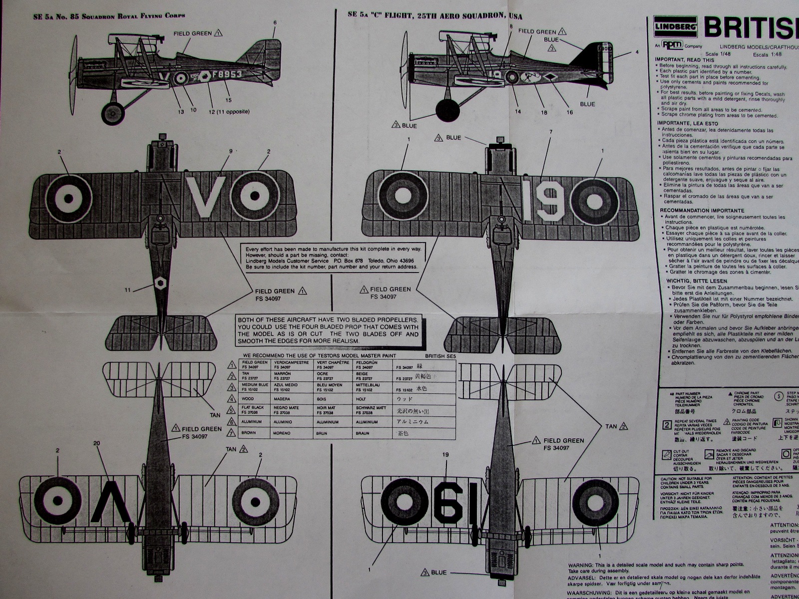 Самолеты Первой Мировой в 1/48 - очень странная тема: вроде бы и ассортимент большой, а некоторые модели выпускаются 1-2 фирмами. Так и с самым лучшим и многочисленным истребителем Королевских ВВС S.E. 5A. Лучший вариант - от Эдуарда, или, на худой конец, от Smer, так как Ревелл будет даже постарше выпущенного в 1993 году предмета данного обзора.