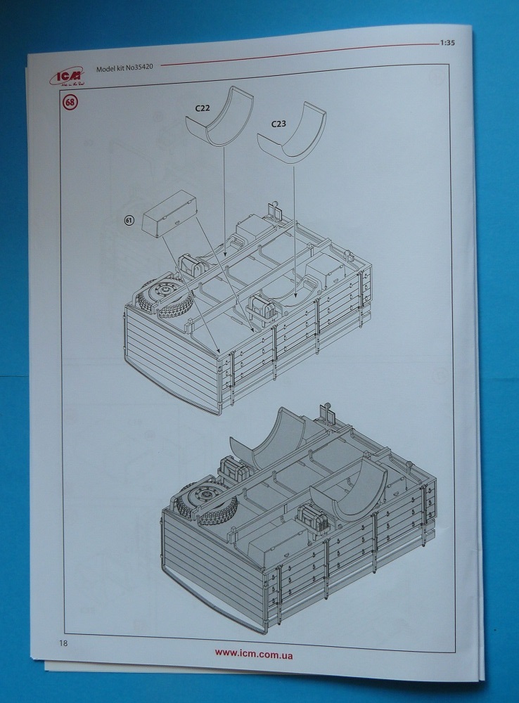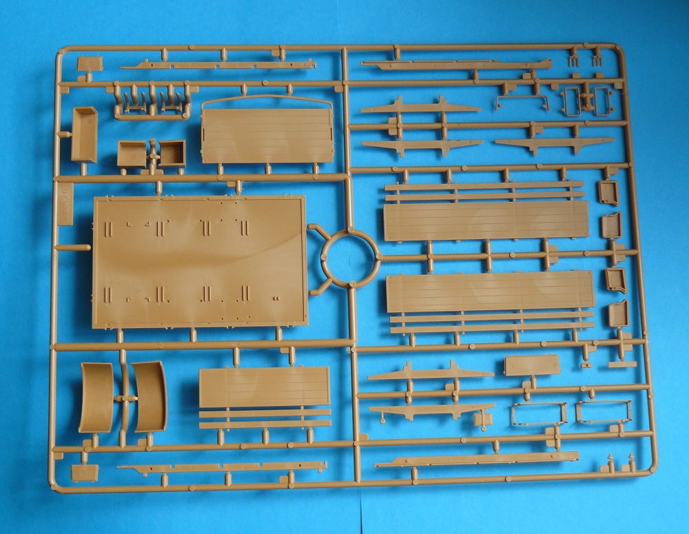 Исм со своим мерсом радует гораздо больше. В коробке имеем 3 литника из полистирола песочного цвета и один литник с прозрачными деталями но, увы, линзы фар без рассеевателей. Деталировка и членение традиционно для исм единственный шаг в сторону это то что передние рессоры отлиты заодно с брусом рамы ,что может быть как плюсом легче собирать так и минусом хуже обрабатывать. Облоя нигде не видно, что не может не радовать. Хорошим бонусом идут 2 канистры крепящиеся под платформой и вполне на себя похожих в отличие от более ранних моделей этой же фирмы. Шины как и у всех последних моделей исм резиновые но, что удивительно без облоя. Таки и в этой бочке дегтя есть ложка меда. В целом конечно уровень .ну никак не дотягивает ни до бронко ни до драгона, цена правда тоже.