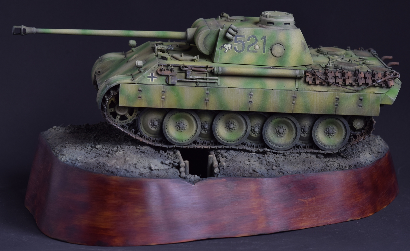 Нельзя не отметить, что выставлена модель на интересно исполненной подставке. Земля и окоп у Вас отлично удались как по фактуре поверхностей, так и по цвету, что однозначно добавило реализма и улучшило восприятие.