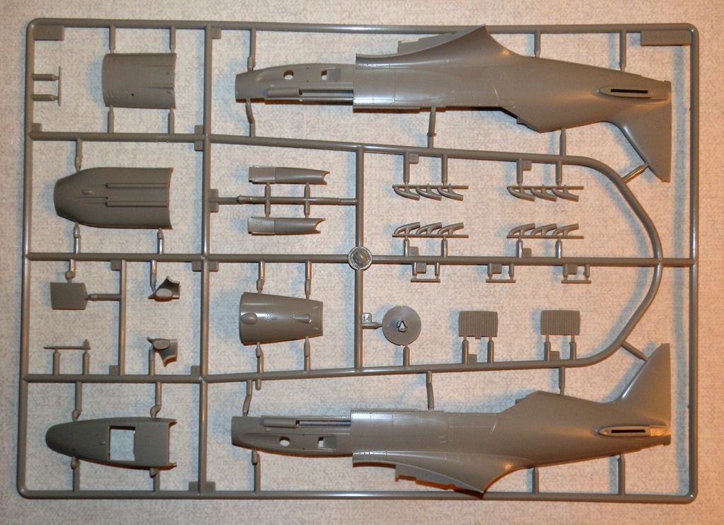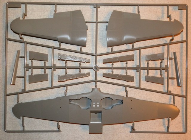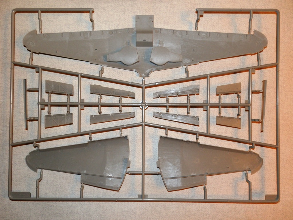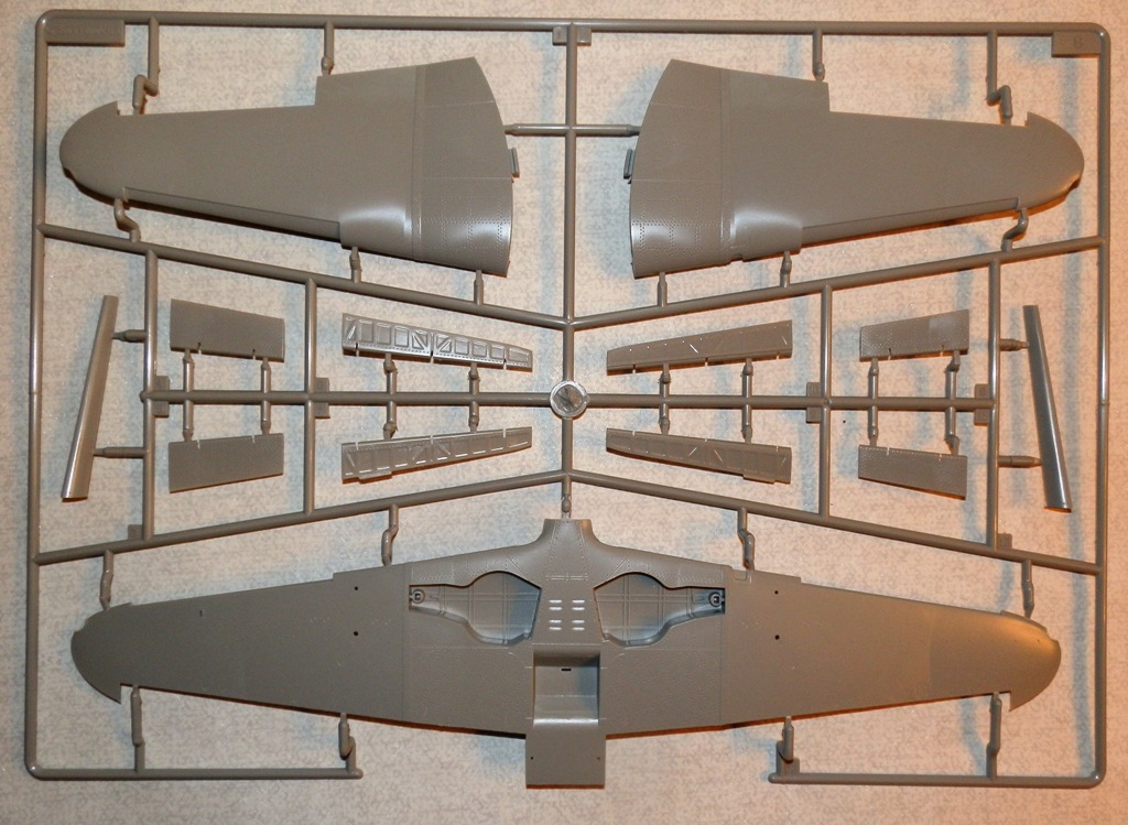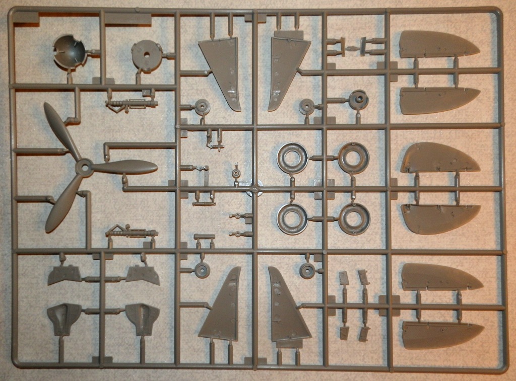 В коробке крупного размера находятся четыре литника из серого пластика, литник с прозрачными деталями, платка травления, инструкция и декаль. Литье весьма аккуратное, облоя и сдвигов форм практически нет. Хорошо проработана клепка и аккуратная внутренняя расшивка. Провис полотна на рулевых поверхностях весьма утрирован, желательно подправить или поменять на дополнения от ЗиПа. Клепка при рассмотрении также переразмерна, но после краски-грунта надеюсь примет более менее адекватный вид. Перенакатывать не планирую. Пневматики шасси даны в необжатом состоянии, тоже желательно доработать. Интерьер кабины дан достаточно подробно, но руки куда приложить найдется. Расстроило отсутствие декали на панель приборов, впрочем некоторым она и не нужна... Прозрачные детали достаточно тонкие и чистые. Даны стекла фар и габаритных огней. Переплет на козырьке заставляет задуматься - стачивать его и полировать, или просто не красить?-