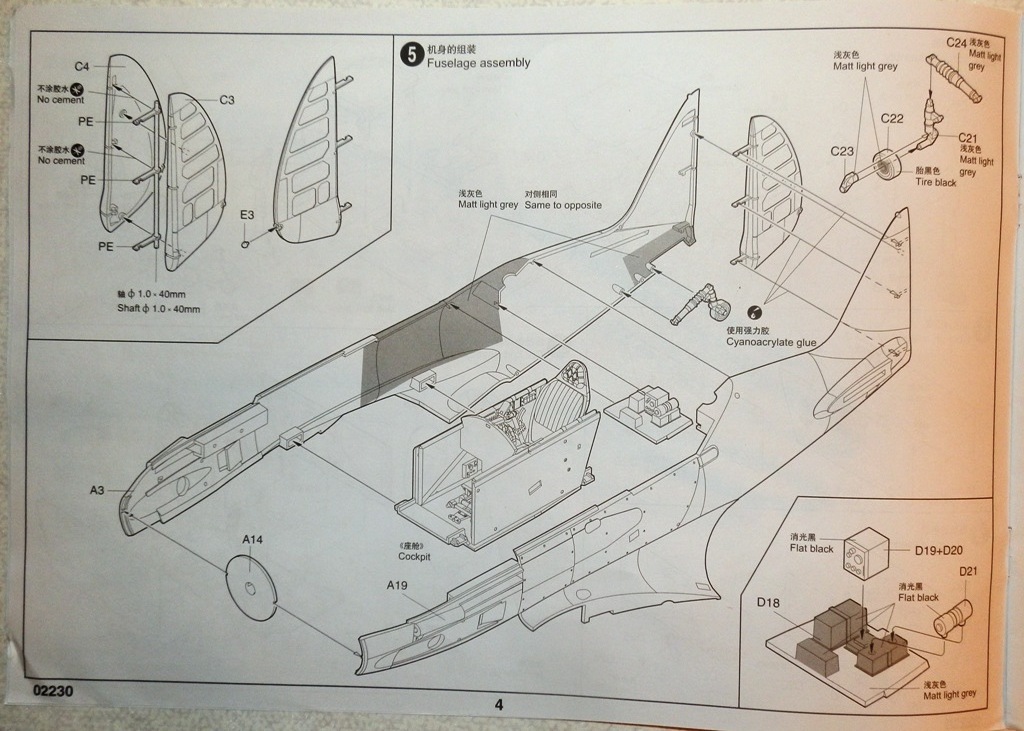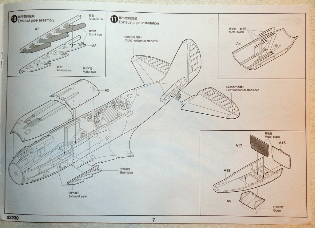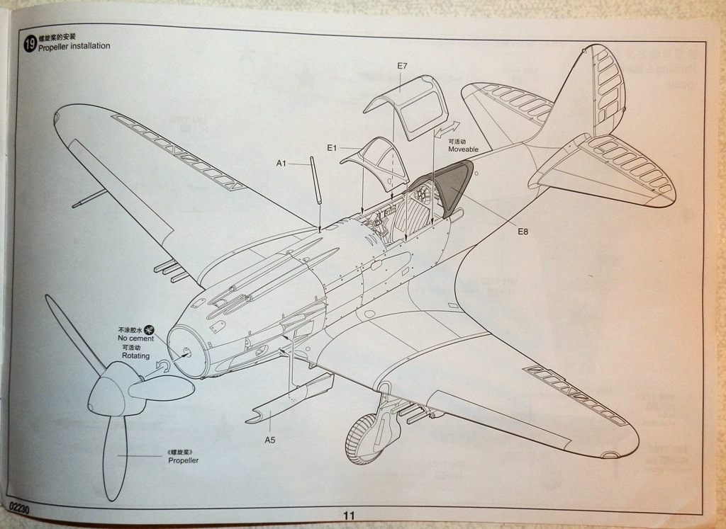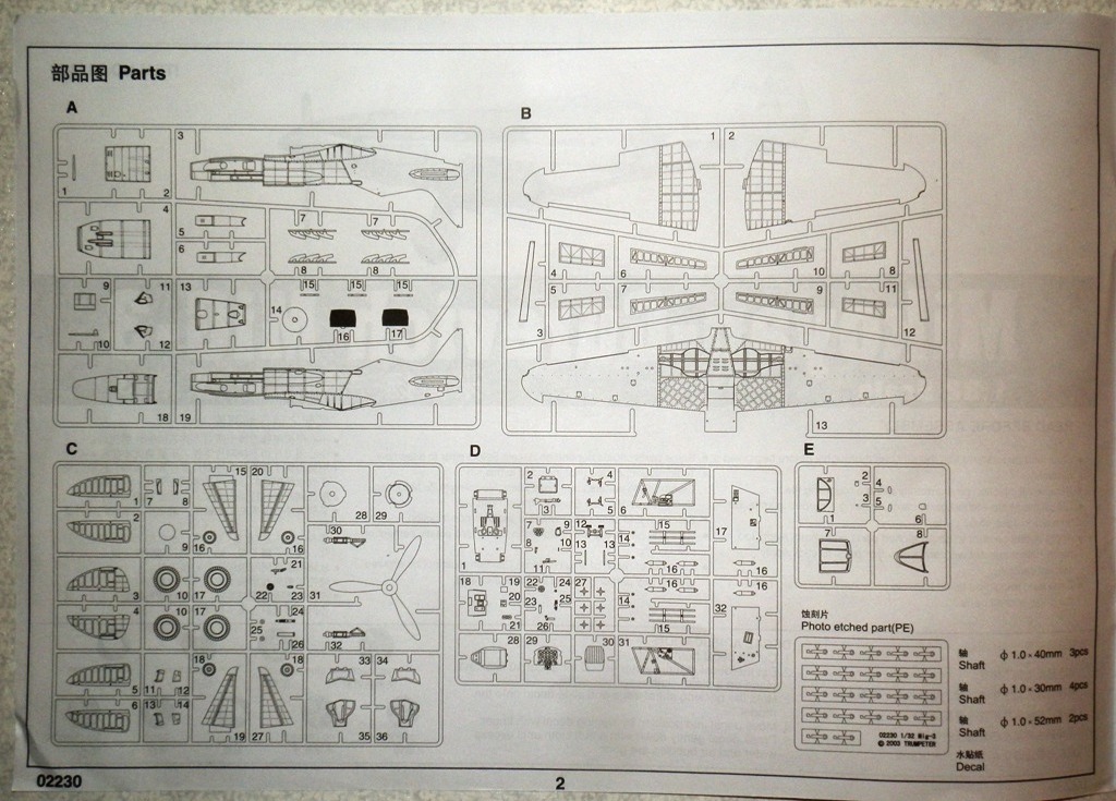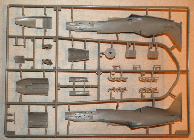 В коробке крупного размера находятся четыре литника из серого пластика, литник с прозрачными деталями, платка травления, инструкция и декаль. Литье весьма аккуратное, облоя и сдвигов форм практически нет. Хорошо проработана клепка и аккуратная внутренняя расшивка. Провис полотна на рулевых поверхностях весьма утрирован, желательно подправить или поменять на дополнения от ЗиПа. Клепка при рассмотрении также переразмерна, но после краски-грунта надеюсь примет более менее адекватный вид. Перенакатывать не планирую. Пневматики шасси даны в необжатом состоянии, тоже желательно доработать. Интерьер кабины дан достаточно подробно, но руки куда приложить найдется. Расстроило отсутствие декали на панель приборов, впрочем некоторым она и не нужна... Прозрачные детали достаточно тонкие и чистые. Даны стекла фар и габаритных огней. Переплет на козырьке заставляет задуматься - стачивать его и полировать, или просто не красить?-