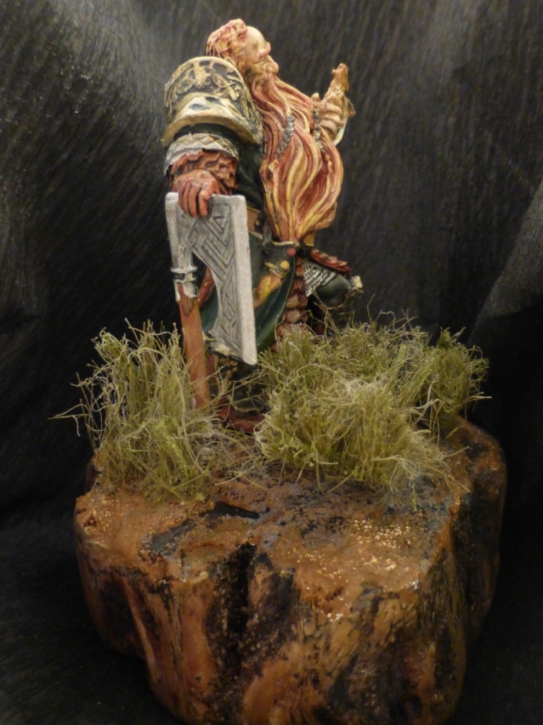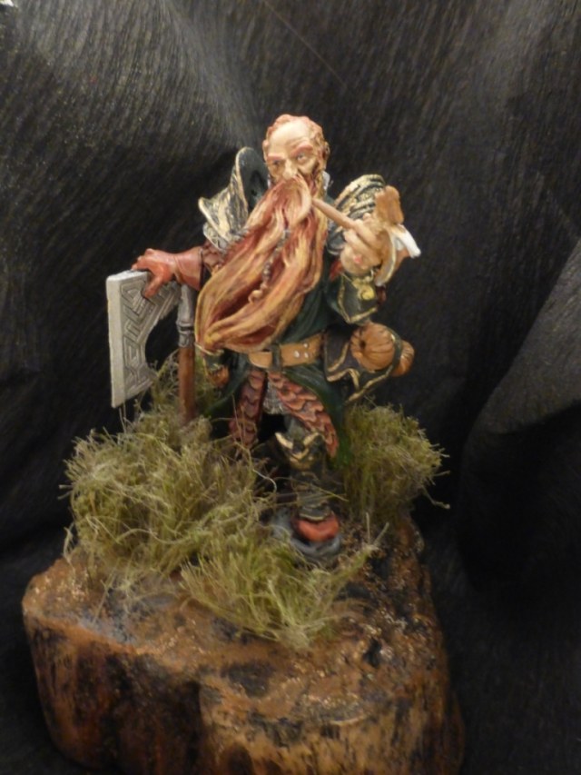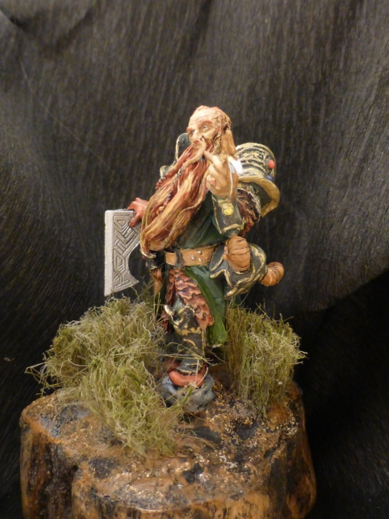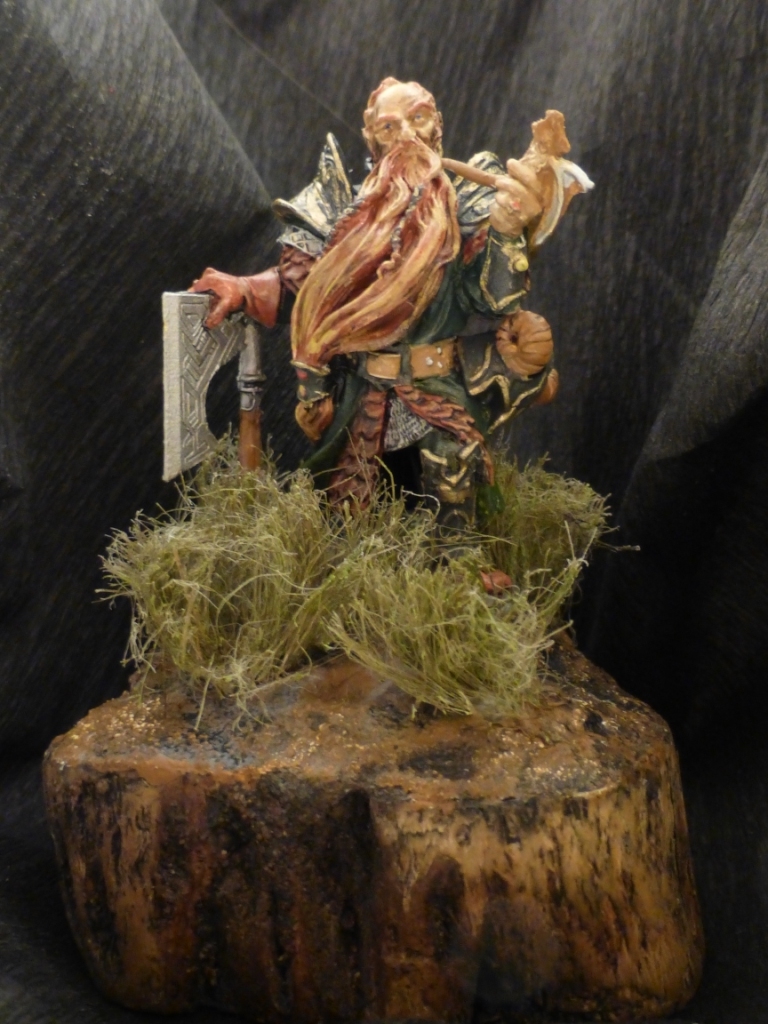 Доброго времени суток! Представляю вашему вниманию оловянную фигурку гнома от ЕкКастинга (переделка от Андреас). Грунт - Тамия, красил МастерАкрилом, лак - IdeaSpray(матовый), трава - сантехнический лён, подставка - самоделка из спила карагайника.