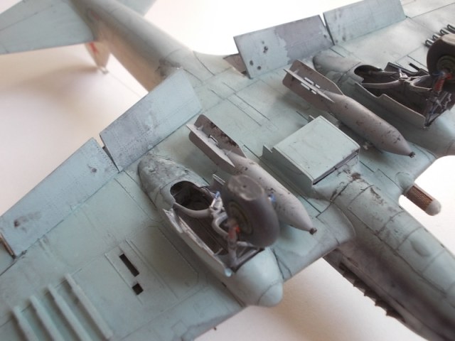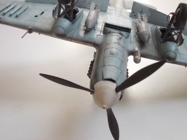 Модель представляет цельнометаллический Ил-2,которые зимой 1942г ещё выпускались.По бомбам спорить не буду,так как у них совсем другая подвеска.Грязь на бомбах - не шелушение краски.