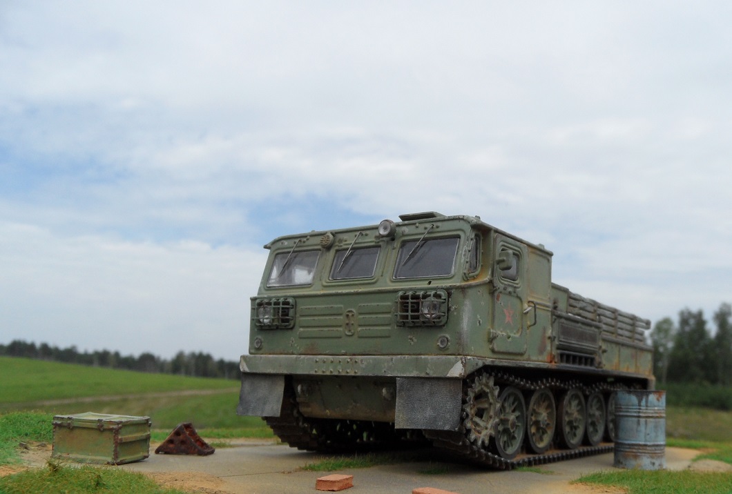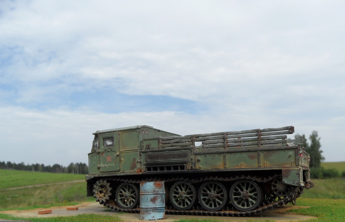 Всем привет! Очередная новинка от AVD Models, гусеничный средний артилерийский тягач . Модель имеет металлическую кабину, все остальное выполнено из пластика, гусеницы-винил, фототравлением даны дворники, решетки на фары, сетки . Собирается без особых усилий . Окрашена Мотип Хаки, для антуража использовал допы от AVD Models- бочка, баллон пропан, ящик, кирка. Бутылка самодел, башмак не знаю чей производитель. Приятного просмотра!