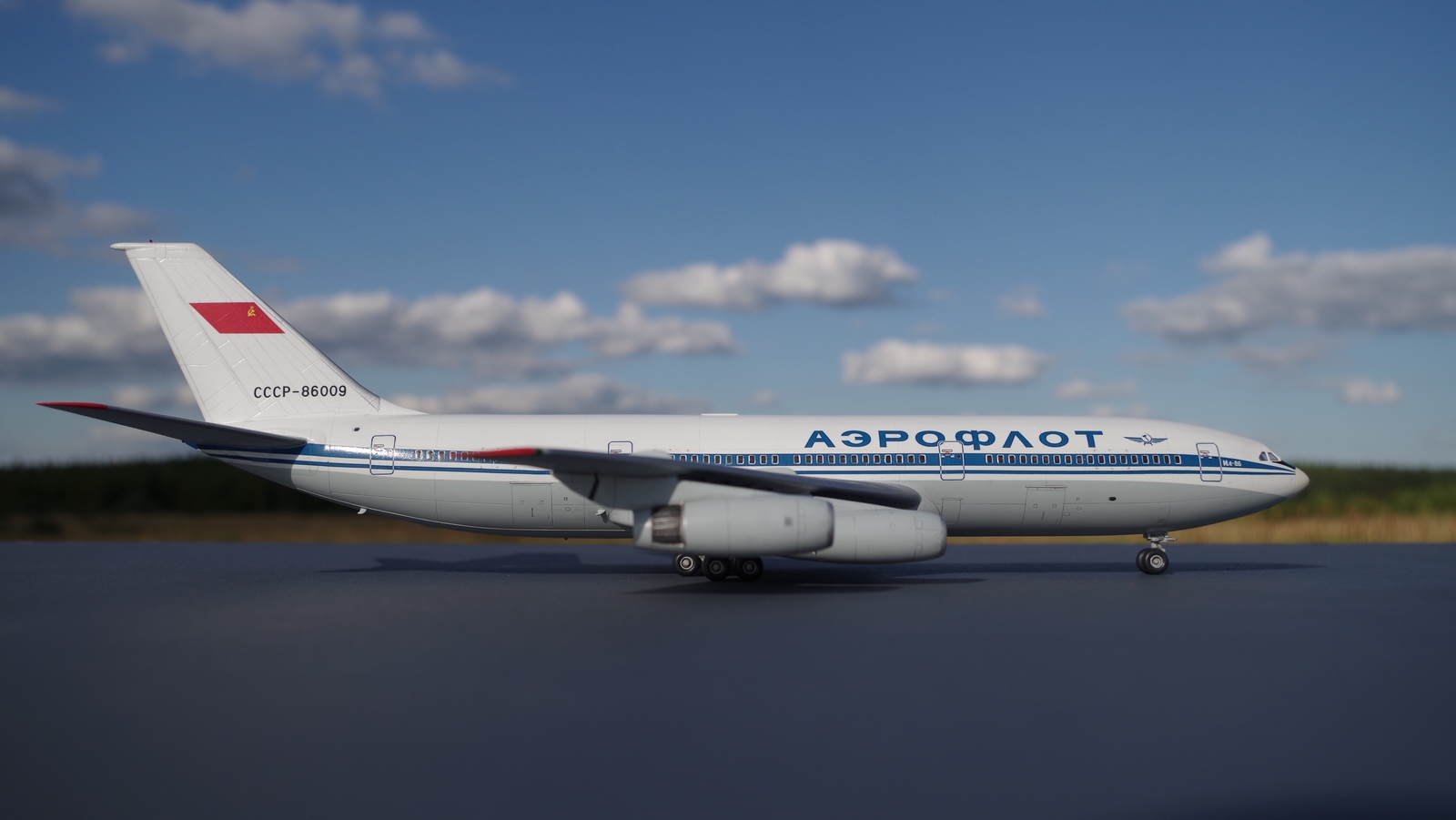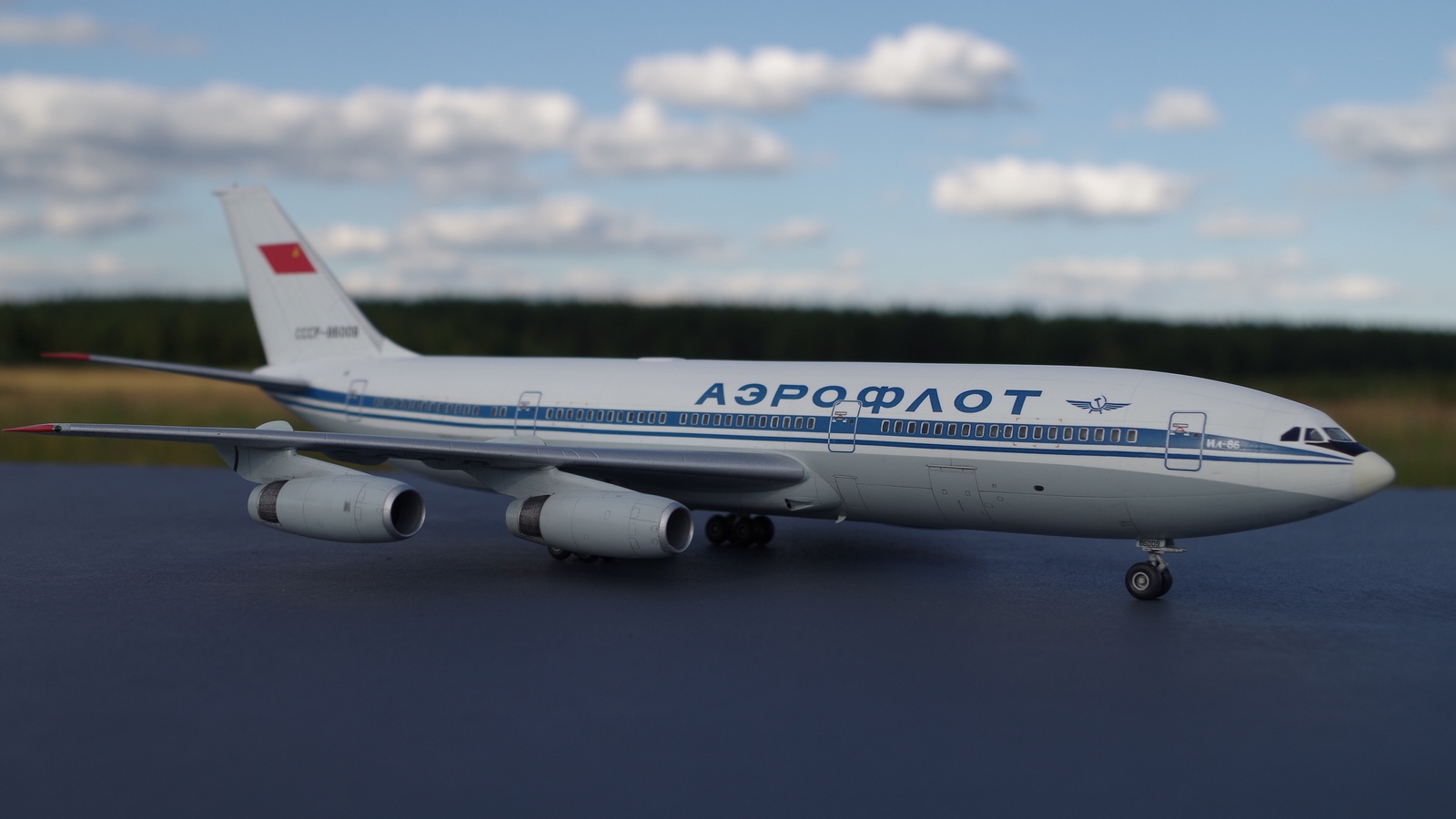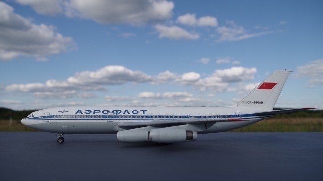 Здравствуйте! Выставляю свою модель ИЛ-86, в ливрее Аэрофлот времён Советского союза. Строил практически из коробки, с небольшим добавлением по мелочи, такими как всевозможные антенки, сопло ВСУ из пивжести. Навигационные огни сделал из тянутого, прозрачного литника, окрасил витражной краской. Изменения коснулись лобового остекления, вырезал маски, и нанеся белый грунт, исправил его форму. Вся химия в работе использовалась от Тамии, низ модели, мешал из XF-19 с большим добавлением белой, декаль от Реваро, после задул полуглянцевым лаком, от вышеупомянутого производителя. Приятного просмотра, жду критики!