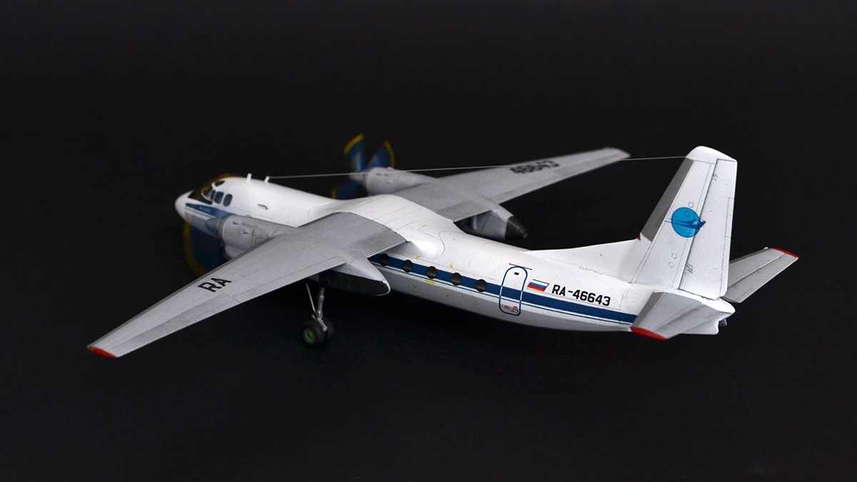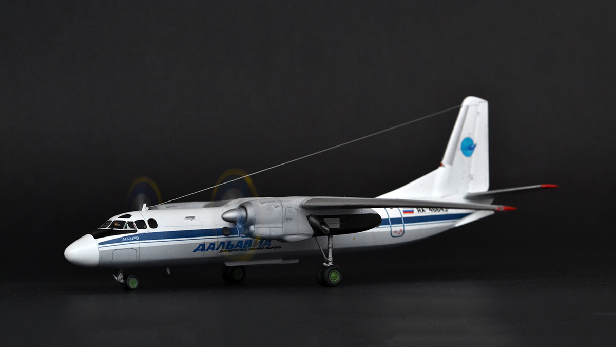 Ещё одна модель, собранная на заказ вместе с предыдущим Ан-2. Исходник взят от RusAir. Модель не дешёвая, очень редкая, но при этом на три головы лучше трэша от Восточного Экспресса. Ощутимо более правильные нос, винты, двигатели. Тонкая и чёткая расшивка. Прелесть, в общем. Конечно, не без проблем, так как набор смоляной, то и пузырьки есть, но их совсем немного. Собирается отлично.