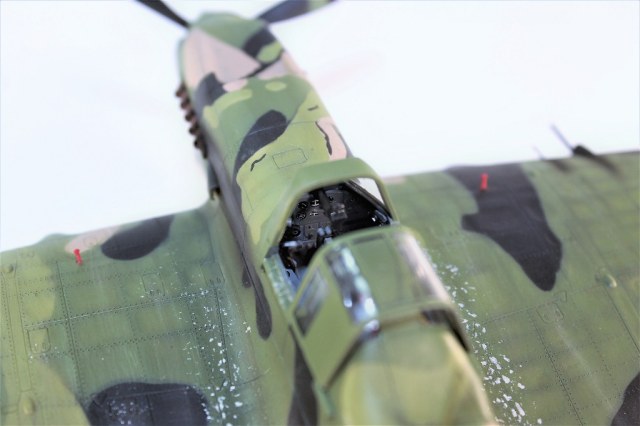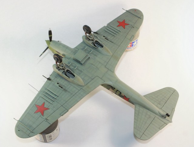 Если вы строили самолет конца 1941 и позднее, то следовало добавить бронепластину на верхнее остекление фонаря и не накатывать заклепки на деревянных консолях.