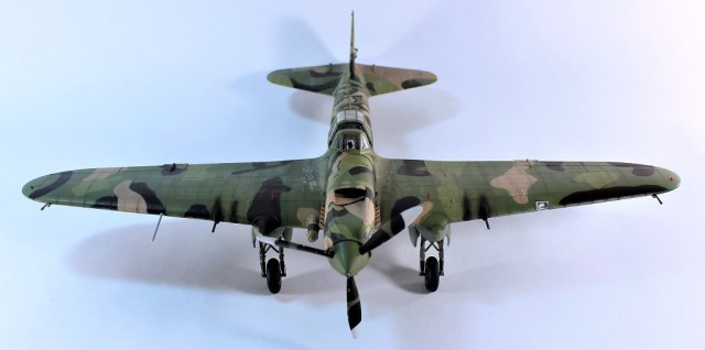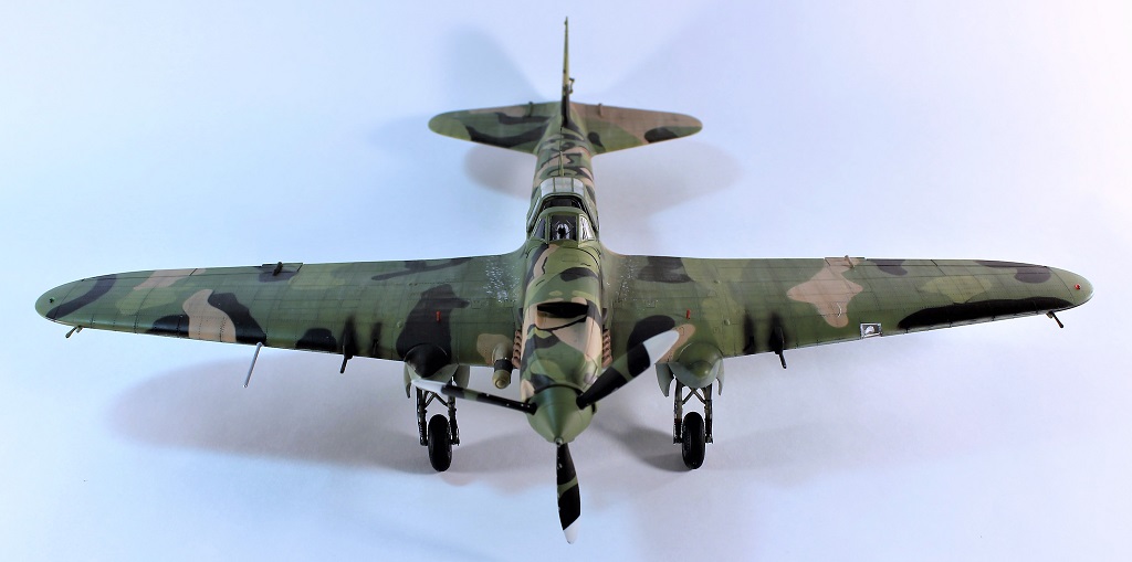 Виртуозно сделан камуфляж. Очень интересно и необычно выглядит Ил в такой раскраске. Но раз фото есть, значит был. Возможно, это один из немногих, на которых пытались экспериментировать с камуфляжем в начале войны? Модель выглядит эффектно.