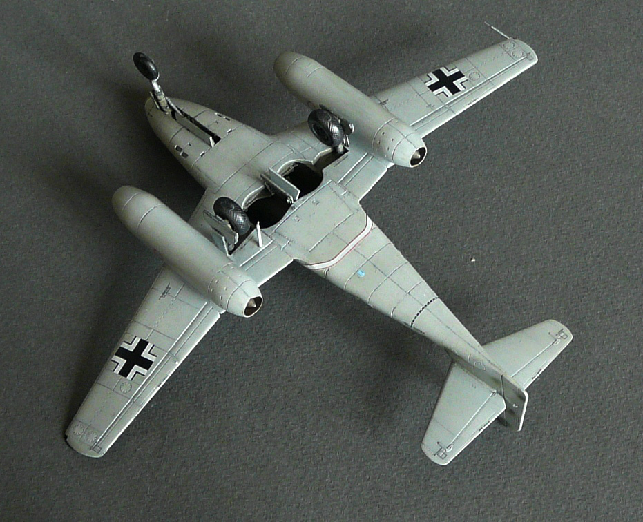 Ну как бы Ме-262. Но вот камо на фото не похож. Обратите внимание на не очень контрастный переход между верхом и боком. Причем как на фото прототипа, так и на рисунке-боковике.