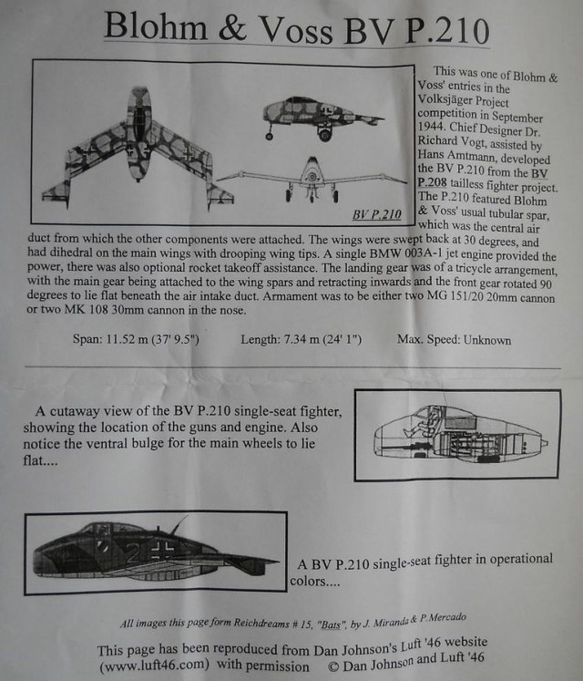 Немецкий проектный истребитель Blohm und Voss BV P.210. Проект от 14 сентября 1944 года. Краткую информацию по нему можно посмотреть здесь.
