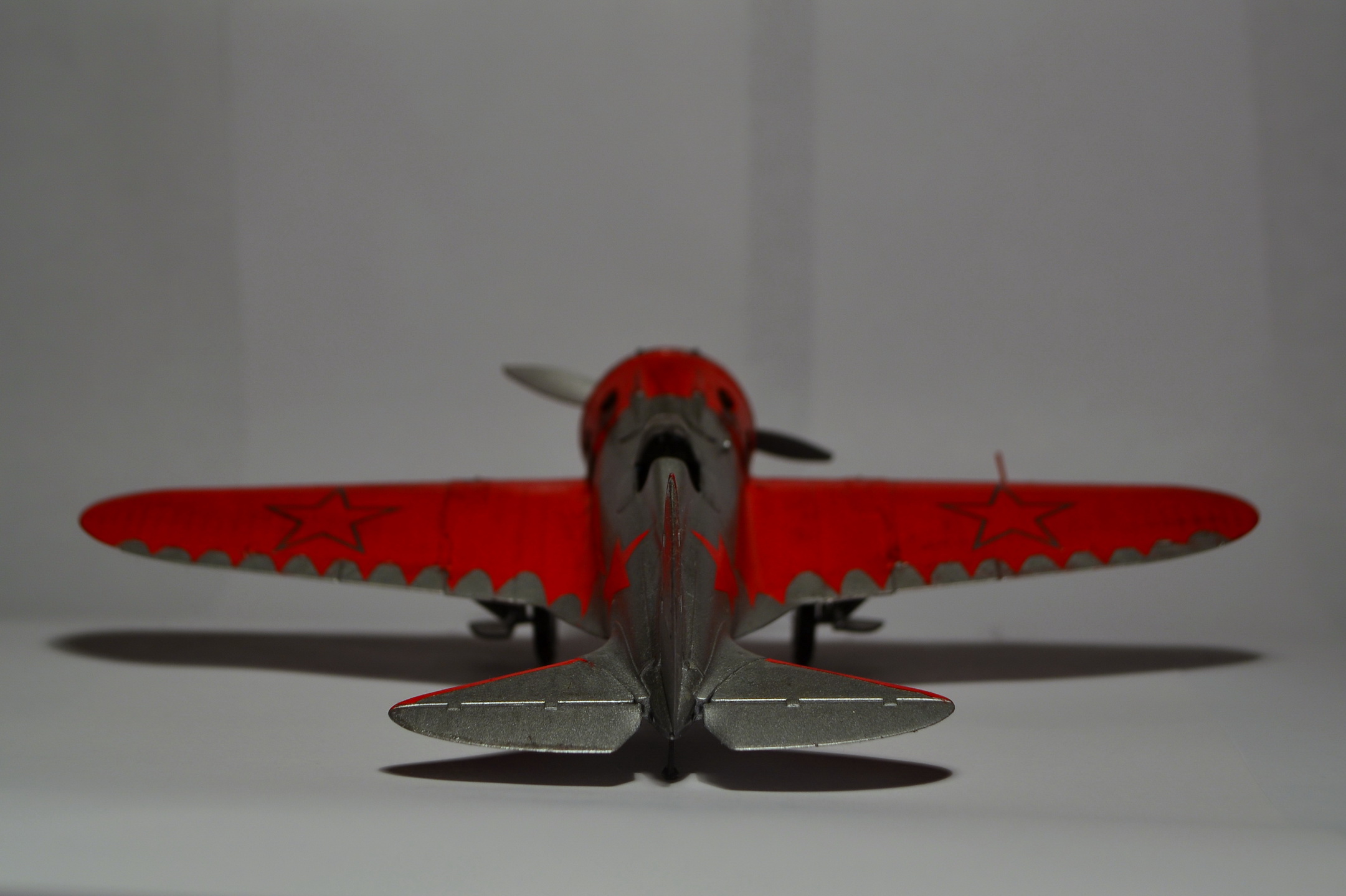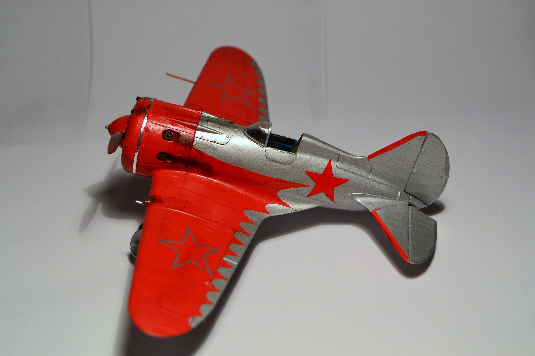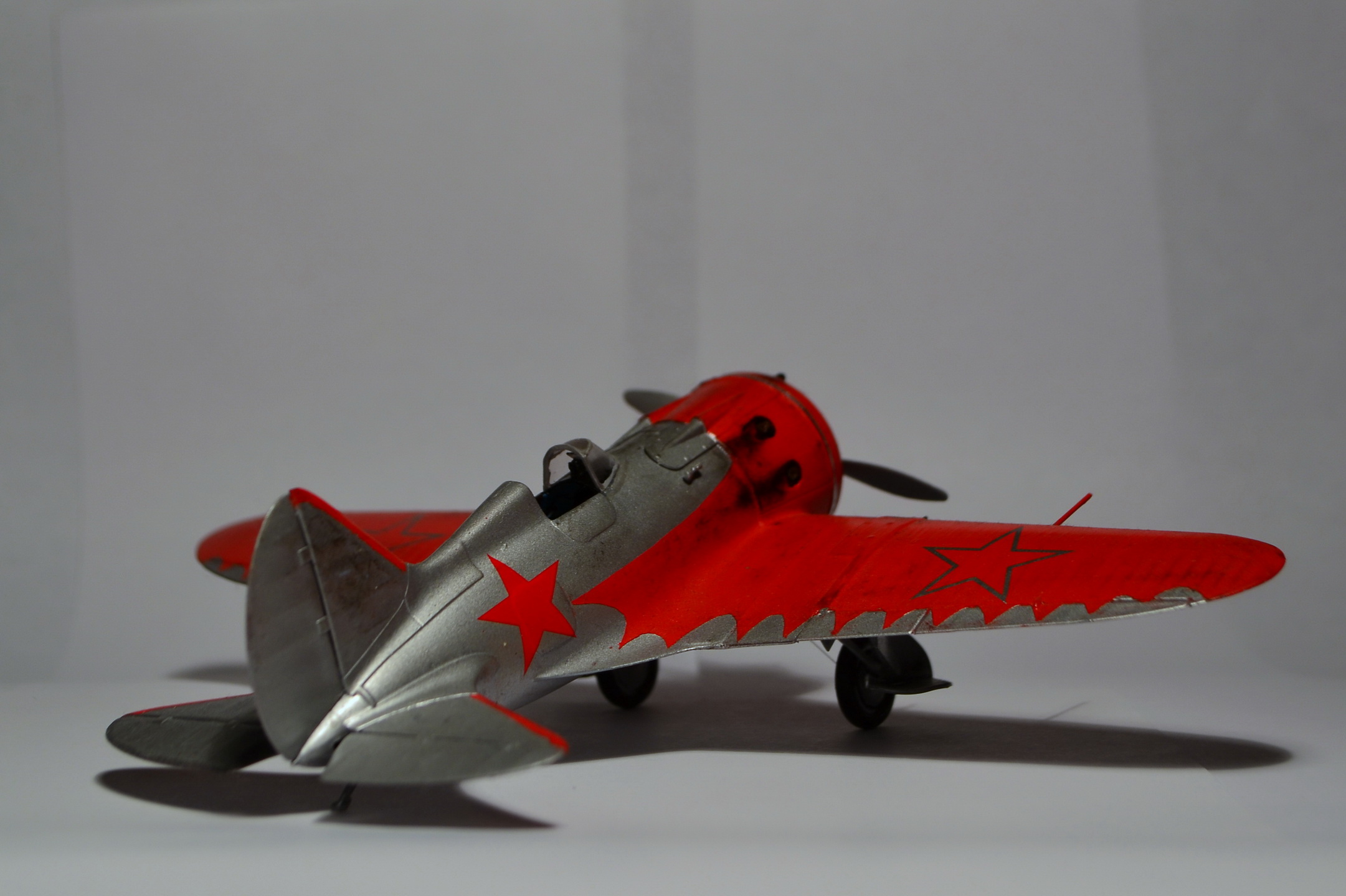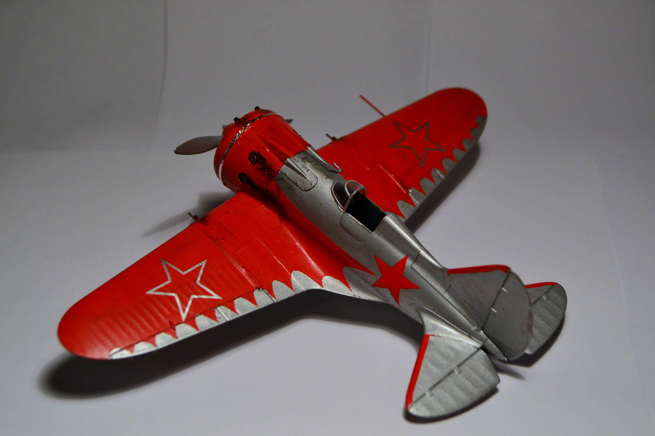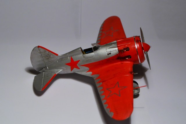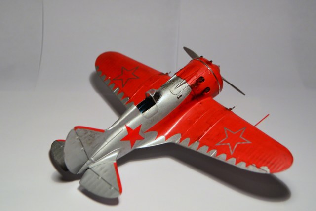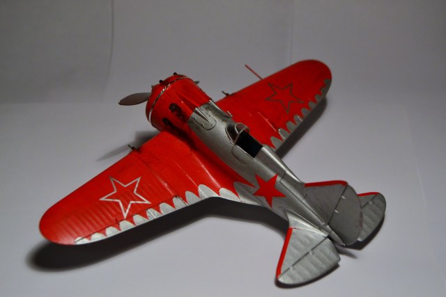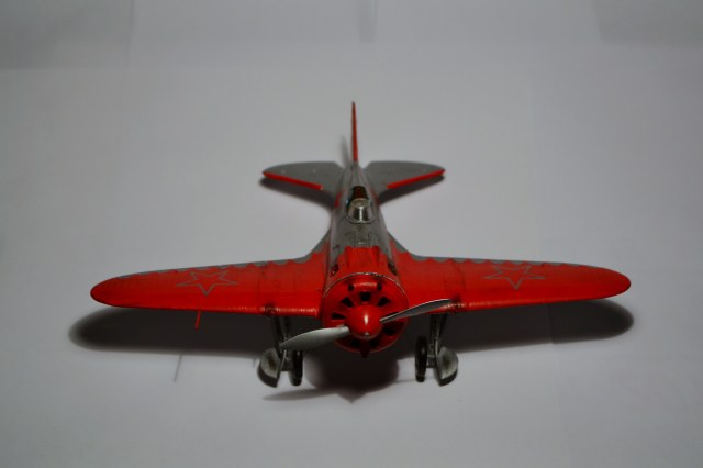 Когда-то, в свое время, доверился дизайнерам и художникам ARK и построил такую же модель самолета "изкаробки". Конечно же был конструктивно раскритикован. Благодаря коллегам узнал, что этот И-16 не имеет никакого отношения к легендарному Чкалову. И что более удивительное - не было такого самолета оказывается в принципе!!! О чем только думали разработчики сего кита. Я думаю, что вдохновение пришло от вида И-16 с выставки в Милане. Но это был совершенно другой тип машины с совершенно другой окраской (никаких "крыльев летучей мыши" там и не было). От себя добавлю, что набор лёгок в исполнении и на выходе тянет на 72-й масштаб. Автору респект за модель! "Четверка" за внушительные старания!