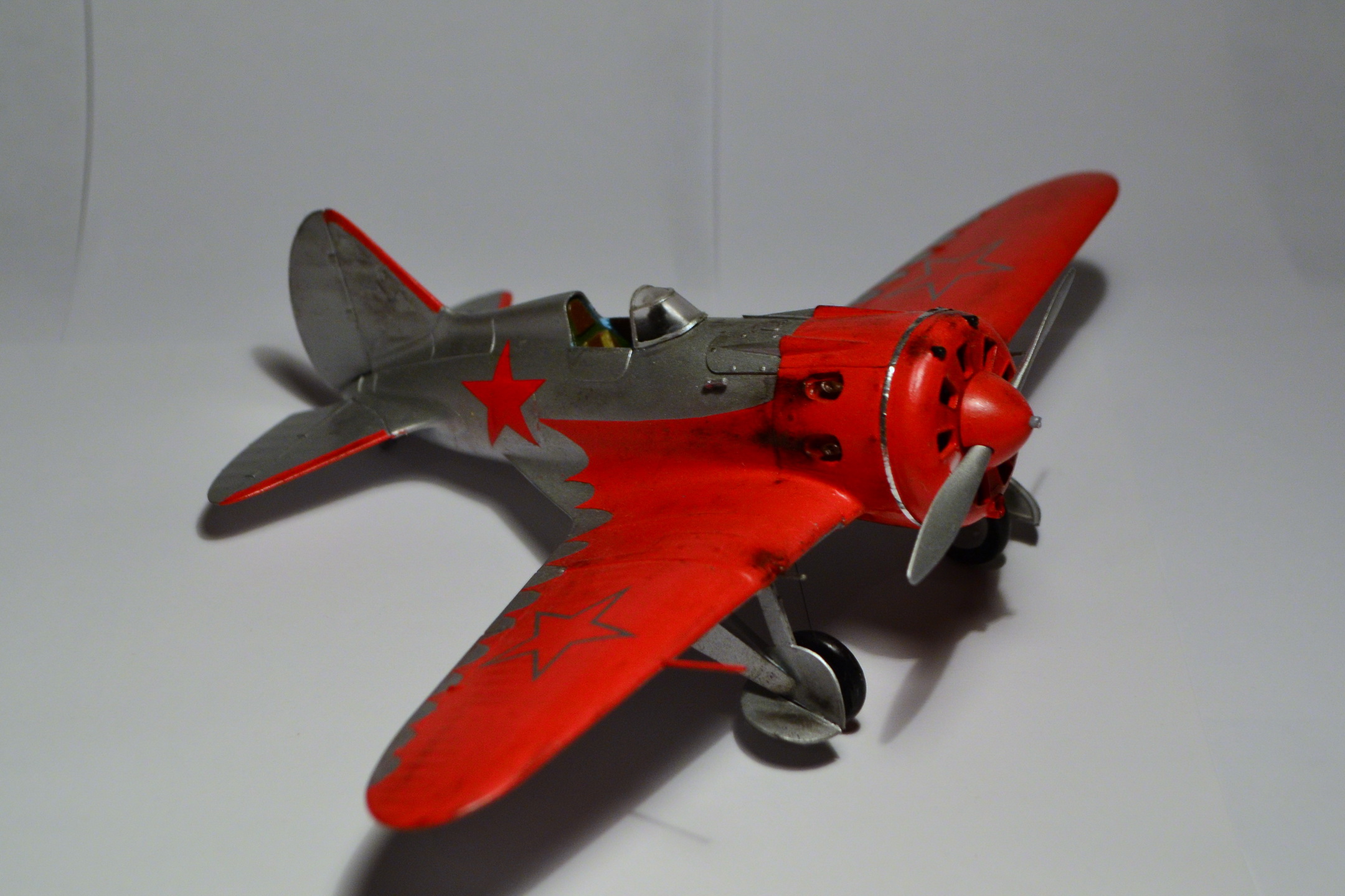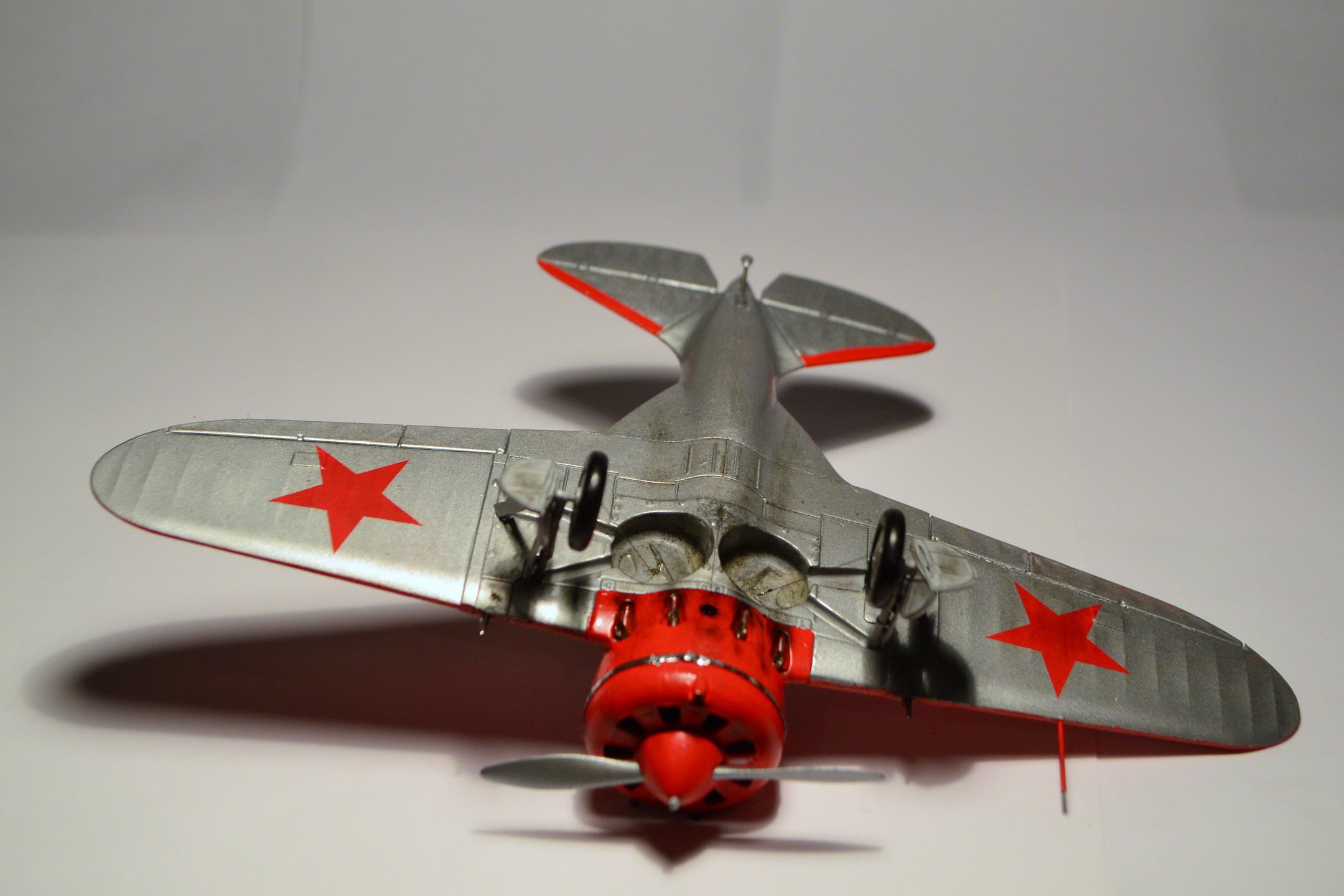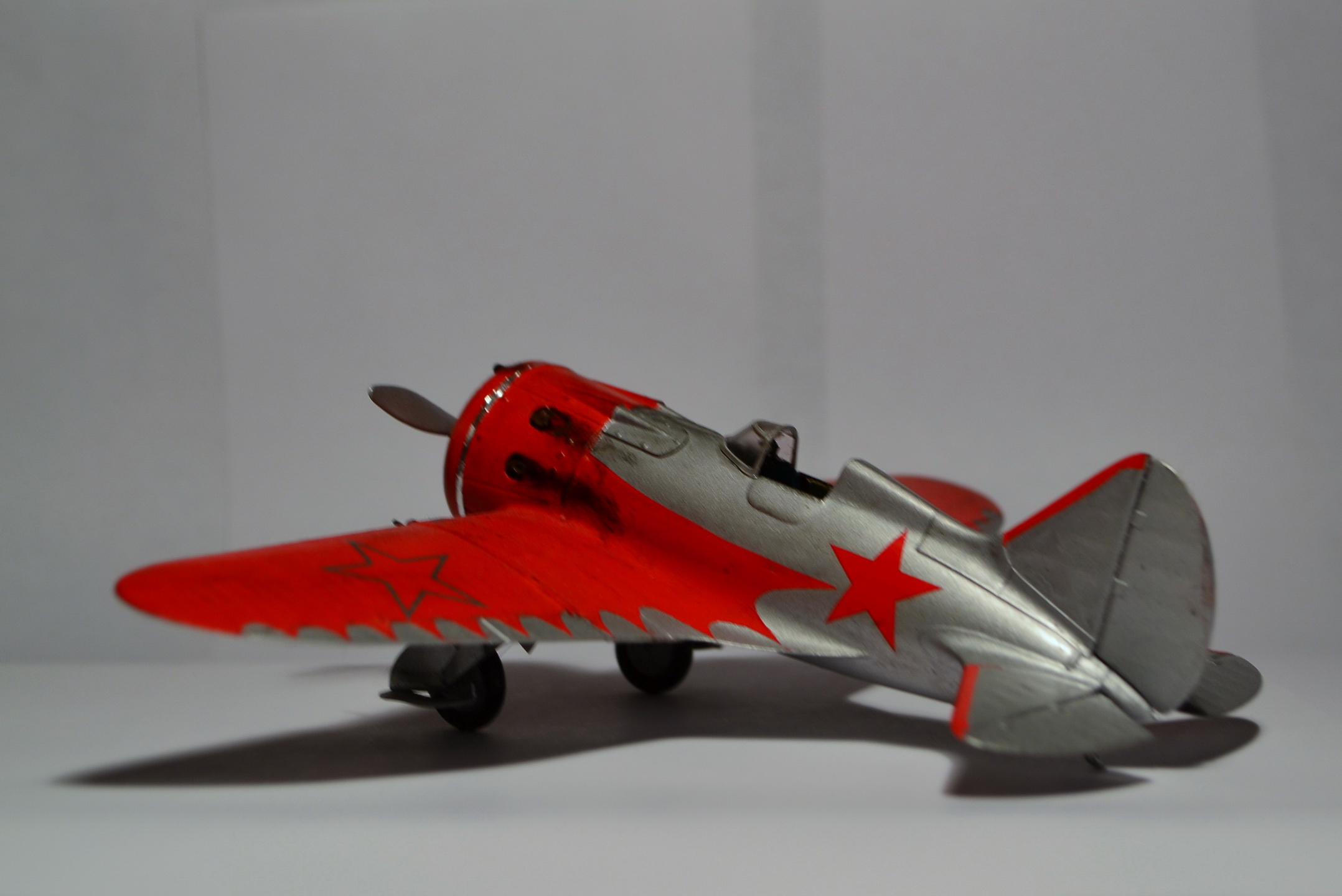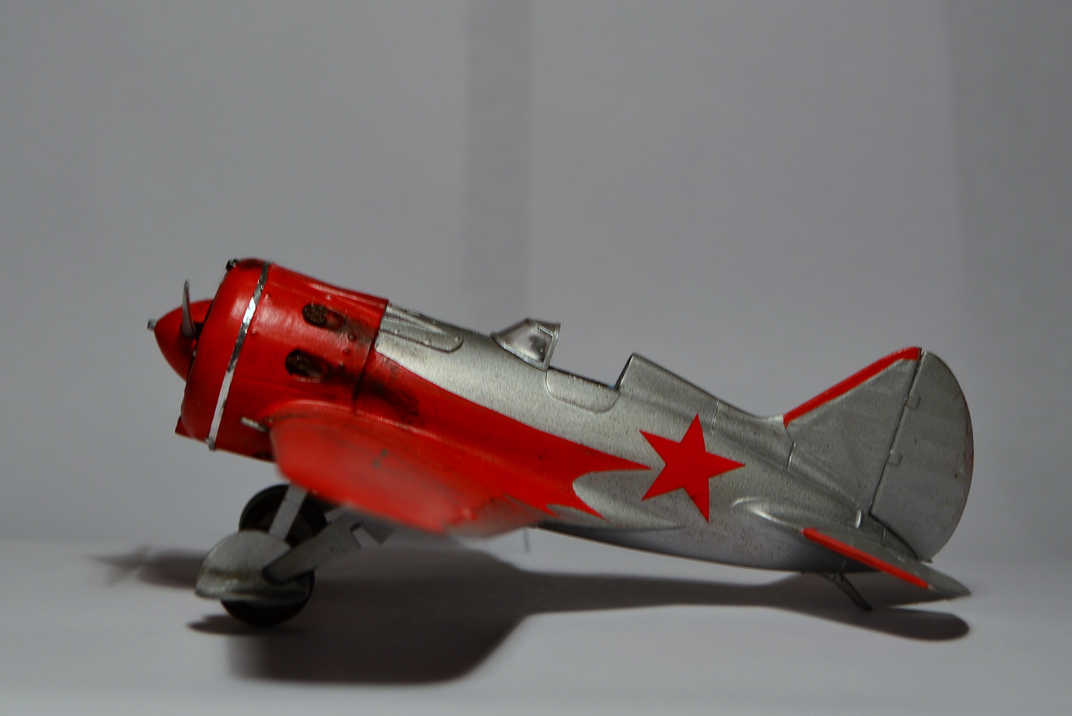 Когда-то, в свое время, доверился дизайнерам и художникам ARK и построил такую же модель самолета "изкаробки". Конечно же был конструктивно раскритикован. Благодаря коллегам узнал, что этот И-16 не имеет никакого отношения к легендарному Чкалову. И что более удивительное - не было такого самолета оказывается в принципе!!! О чем только думали разработчики сего кита. Я думаю, что вдохновение пришло от вида И-16 с выставки в Милане. Но это был совершенно другой тип машины с совершенно другой окраской (никаких "крыльев летучей мыши" там и не было). От себя добавлю, что набор лёгок в исполнении и на выходе тянет на 72-й масштаб. Автору респект за модель! "Четверка" за внушительные старания!