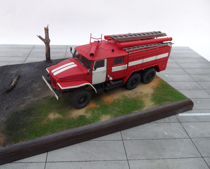 Всем привет! Очередная новинка от AVD Models, пожарная цистерна на базе Урал 375. Модель имеет металлическую раму и кабину, остальные детали даны в пластике. Деталировка мне понравилась, имеется внутренняя отделка кабины и различных пожарных приспособлений, пожарные девайсы на кузове. Фототравлением даны дворники . От себя провел небольшие доработки. В сборке несмотря на большое кличество деталей модель оказалась как всегда простой . Окрашена эмалью Мотип из баллона . Приятного просмотра!