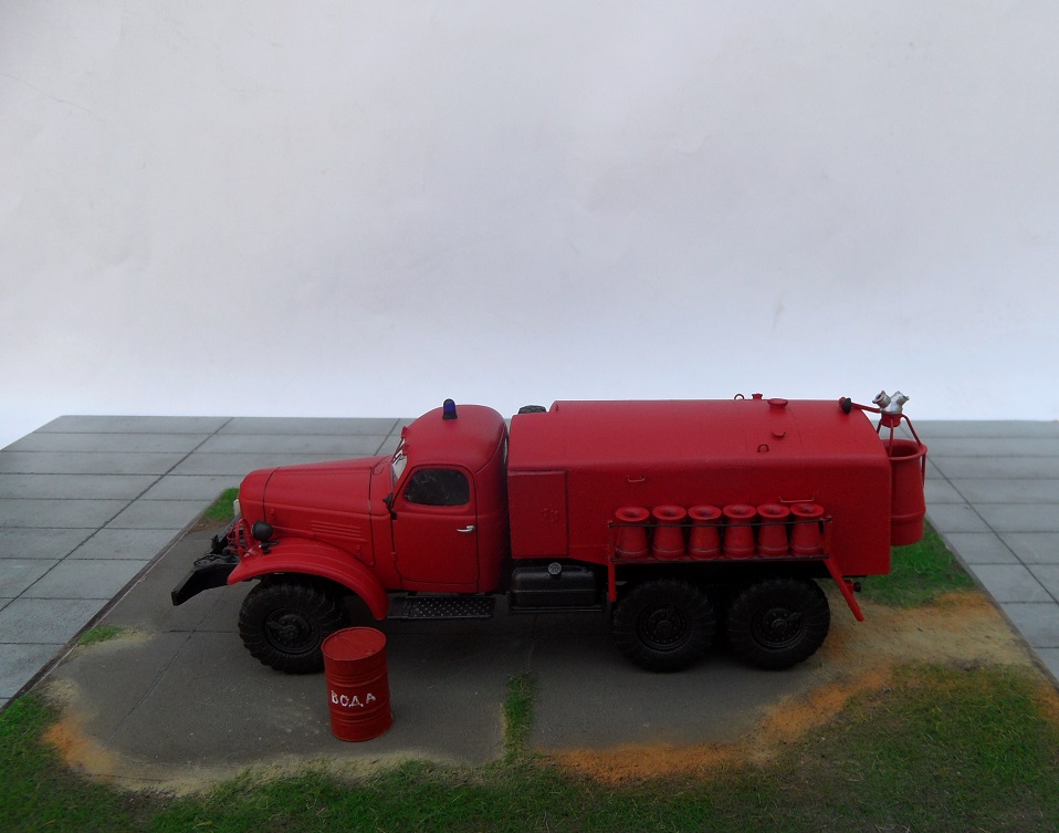 Машина предназначена для проведения обмывочно-нейтрализационных работ с компонентами ракетного топлива, а также для тушения очагов пожаров. Данная модель из смоляной серии. AVD Models постоянно помимо традиционных пластиковых моделей разрабатывает очень редкие и интересные варианты автомобилей и льет надстройки для них из смолы. Модель имеет металлическую кабину, пластиковую раму и другие элементы. Сама же пожарная надстройка вместе с инвентарем выполнена из смолы. Как я уже писал смола очень хорошего качества, хорошо обрабатывается и имеет достаточную прочность. Сборка не доставила труда. На новых смоляных моделях теперь ложат уже окрашенные в красный задние стопы. И доработок решетки от Петрограда для защиты оптики и по мелочам. Окрашена эмалью Мотип . Приятного просмотра!