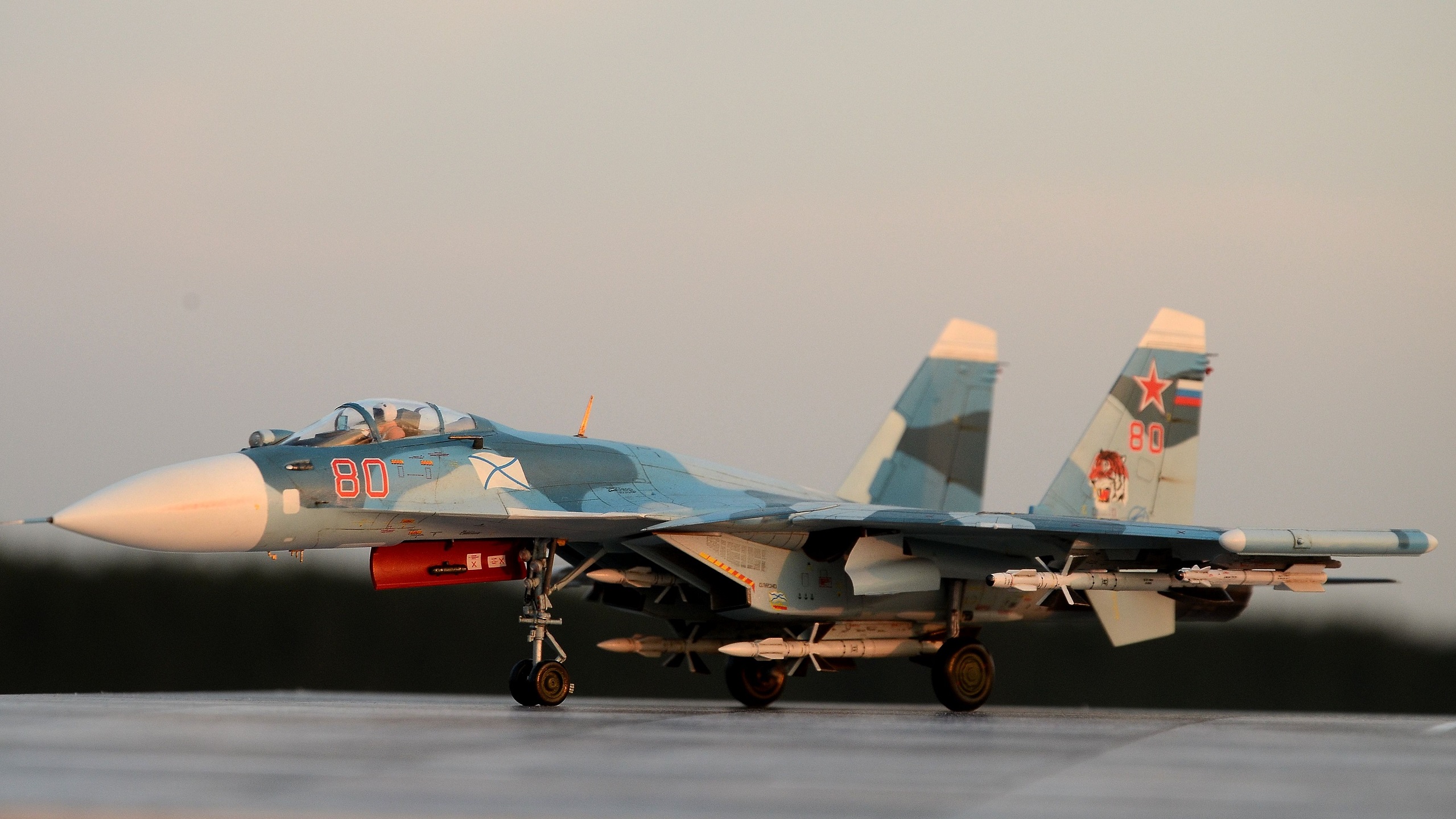 Ну просто небо и земля, по сравнению с соседним по прихожке палубником. У вас действительно получился самолет, а не модненький нынче артхаус из серии "я художник, - я так вижу". Единственно, я бы вооружение либо сократил, либо на "воздух-поверхность" переделал: Палубник с вооружением сесть не может, а выбрасывать такое количество ракет в море - дорогое удовольствие. Этого даже пендосы себе не особо позволяют. ИМХО рациональней его бомбами обвешать типа Здраствуй Сирия!