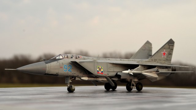 Даже если есть несоответствия и неточности в мат.части ( которые заметят специалисты) не важно - облик МИГа-31 передан очень удачно. Особенно благодаря фотосессии.
