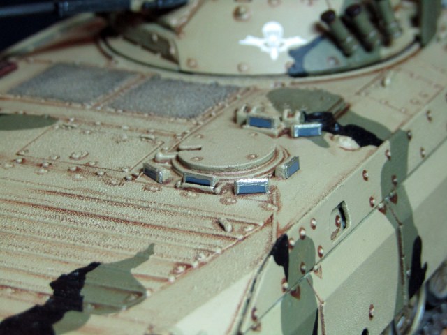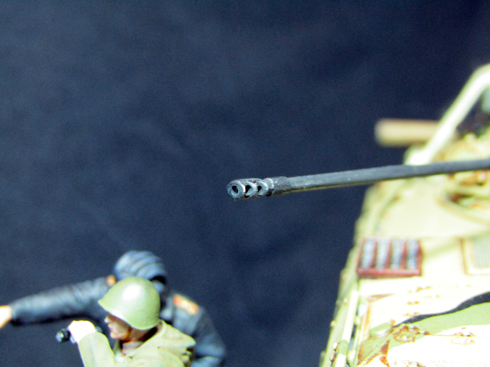 Насчёт ПТУР вообще споры ходят, не поймёшь хаки он должен или всё-таки серебряным. Оптику в коробке что-то не нашёл, видимо выложили. Компенсатор у калаша старался сделать не серебряным, а "потасканным". По-поводу задней левой двери согласен, в следующий сделаю.
