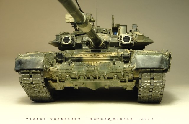 (С ужасом думаю о своём прежнем желании сделать на основе МЕНГовского Т-72Б1 дико ушатанную сирийцами в их городских развалинах Т-72АВ с её более чем 300-ми «шоколадками» динамической защиты, разорванными в клочья подкрылками и юбками, содранными бортовыми ящиками ЗИП и т.д.)