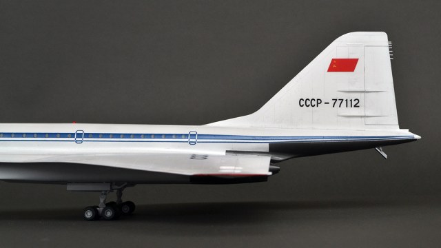 Я этому человеку уже не первую модель строю и он знает, как я тонирую, тот же олимпийский Ту-134 например. Но вот 144 хотел именно чистую. Переубедить у меня не получилось. Хотя в целом я именно так и думаю, что ненавязчивая тонировка делает модель не грязной, а объемной.