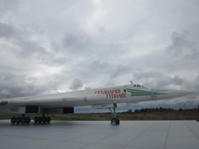Доброго всем здоровица .Представляю Вам своего гиганта.Ту 160 из состава 121-го ГвТБАП Энгельс.Этот борт последний переданный Украинской стороной.Самолет находился в нелетном состоянии,требовался ремонт.Силами российских техников в Прилуках, удалось поднять его в небо и благополучно переправить на территорию страны.Борт прошел капремонт уже на КАЗе .После модернизации в цехах того же КАЗа в 2015 году,получил имя трижды Героя Социалистического Труда Туполева А.Н.. Теперь что касаемо модели. Доработал стойки шасси.Как смог обточил колеса основных стоек. Окраска из баллончика .Декали Бегемот.Самолет собран давно,я только изменил ОЗ на новый современный лад.Приятно просмотра.