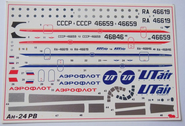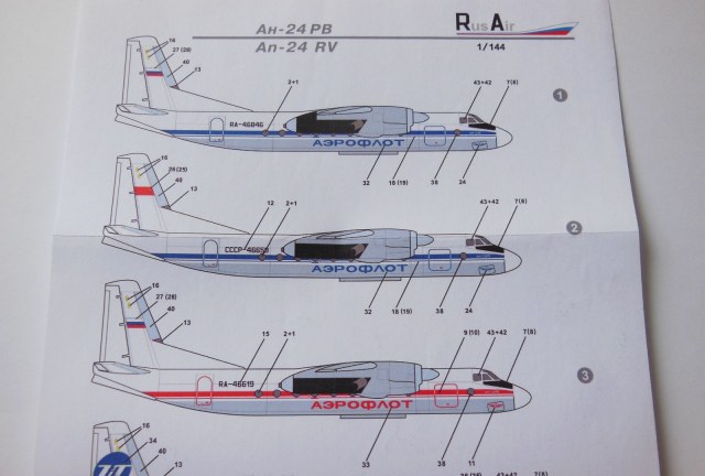 Инструкция предлагает 4 варианта окраски, три из которых это Аэрофлот в разных вариациях и четвертый вариант на ЮТэйр. Так же дается возможность сделать декальным ПОС, ни разу еще не видел такого решения.