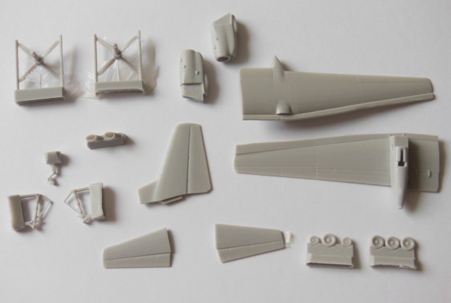В коробке уже нет привычных для пластиковых моделей рамок литников. Мы можем наблюдать просто детали, которых, опять же относительно пластиковых моделей, не так много.