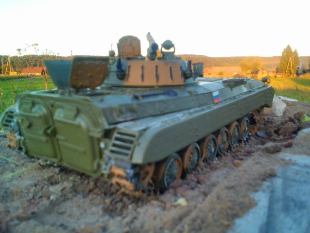 Модель БМП -2 . Позводства " звезда " сборка сложная особенно драги и детализация не очень , некоторые детали приходилось подрезать . Компенсирует тем модель ненадо красить , а вцелом неплохой набор чик.