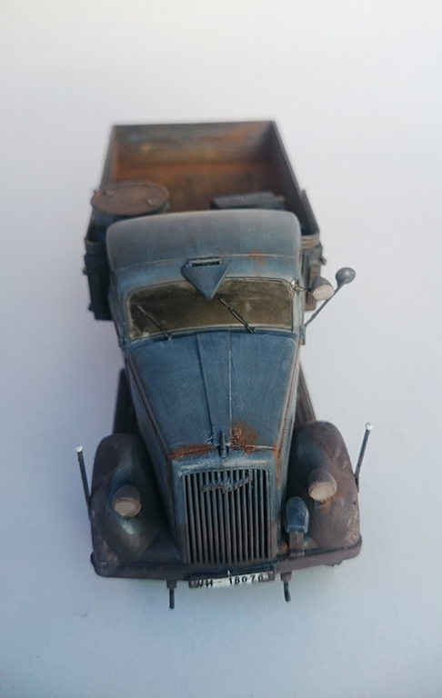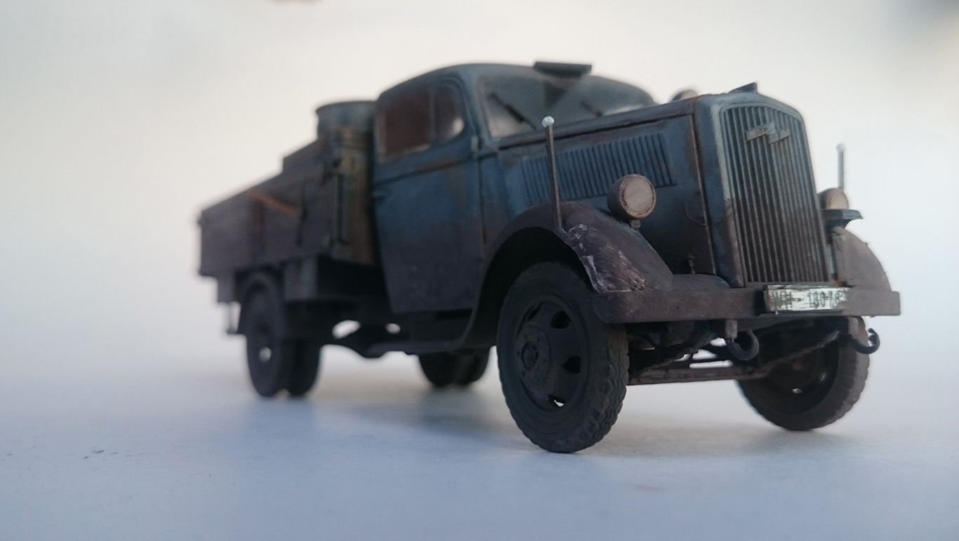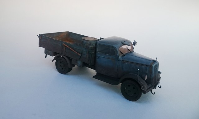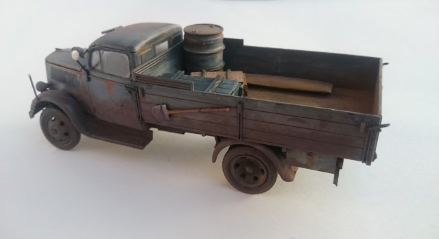 немецкий легкий грузовик Typ 2,5-3,2 (1,5 t) "Opel Blitz"Модель полностью из коробки (за исключением бочки и ящиков в кузове).