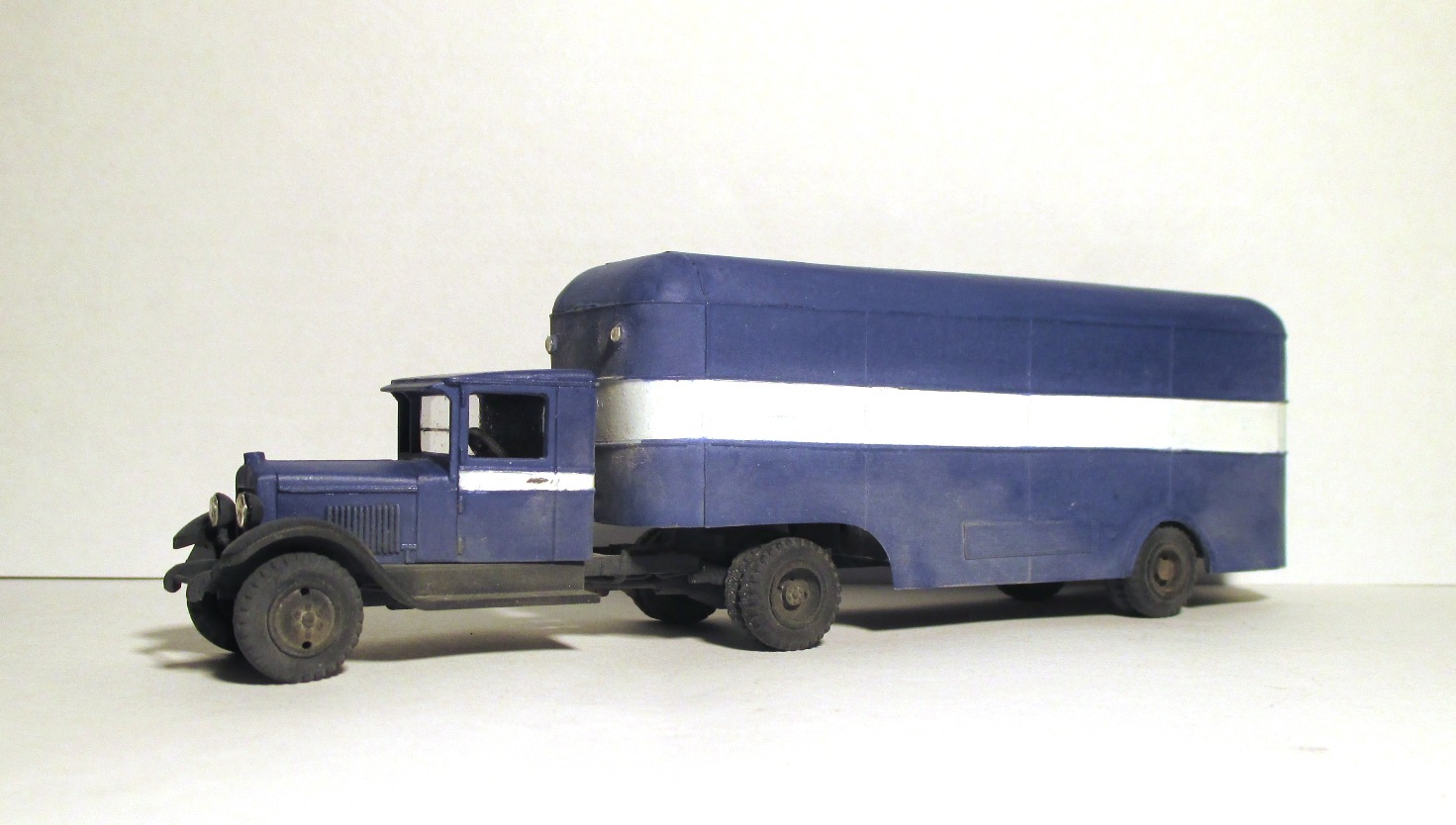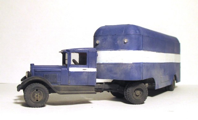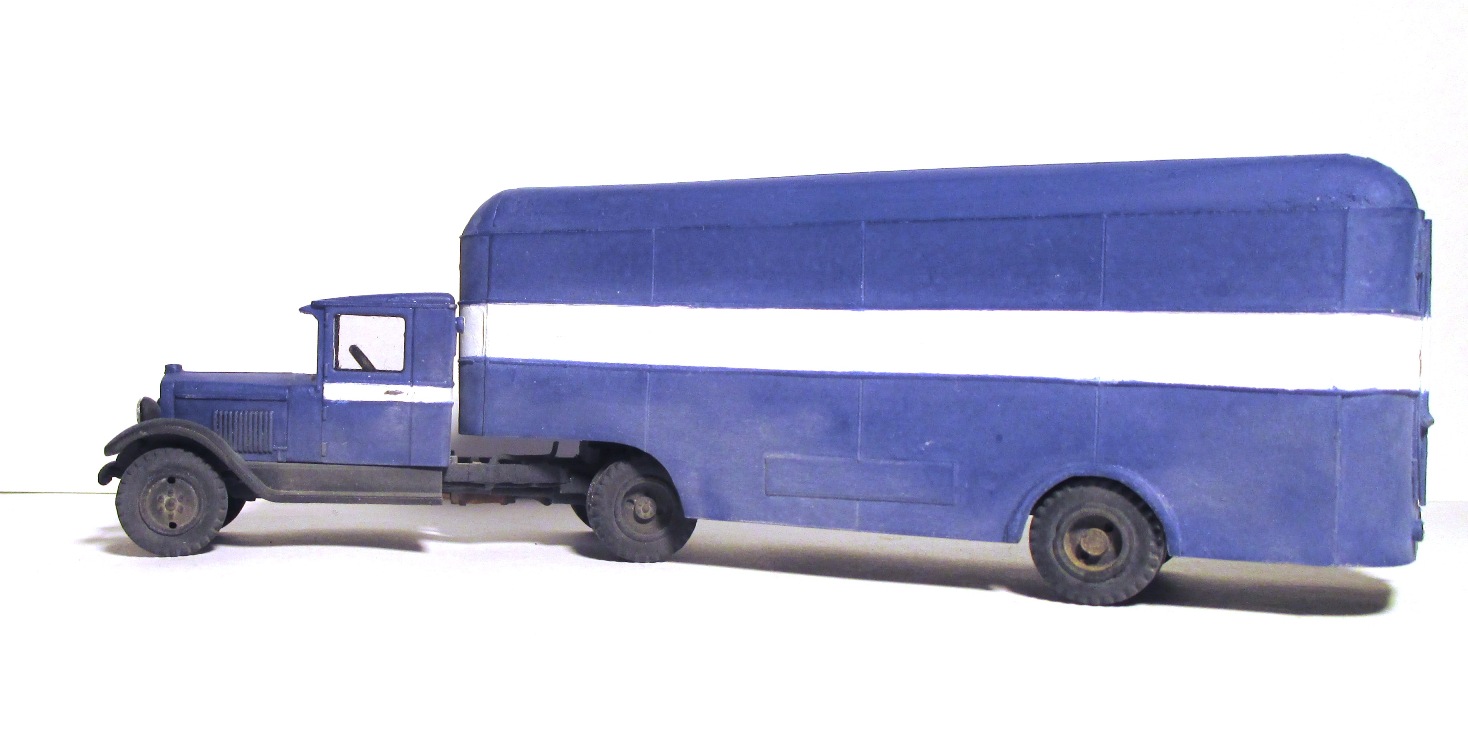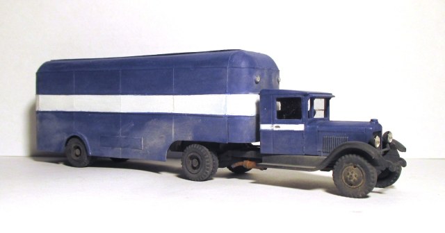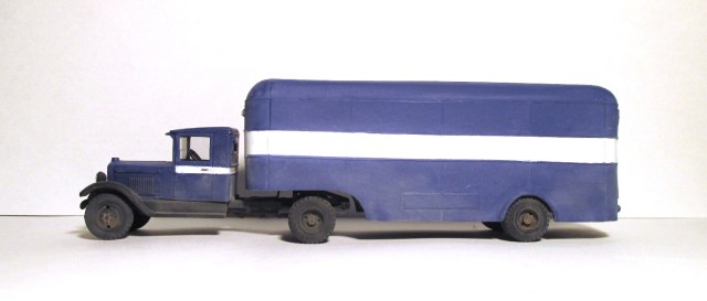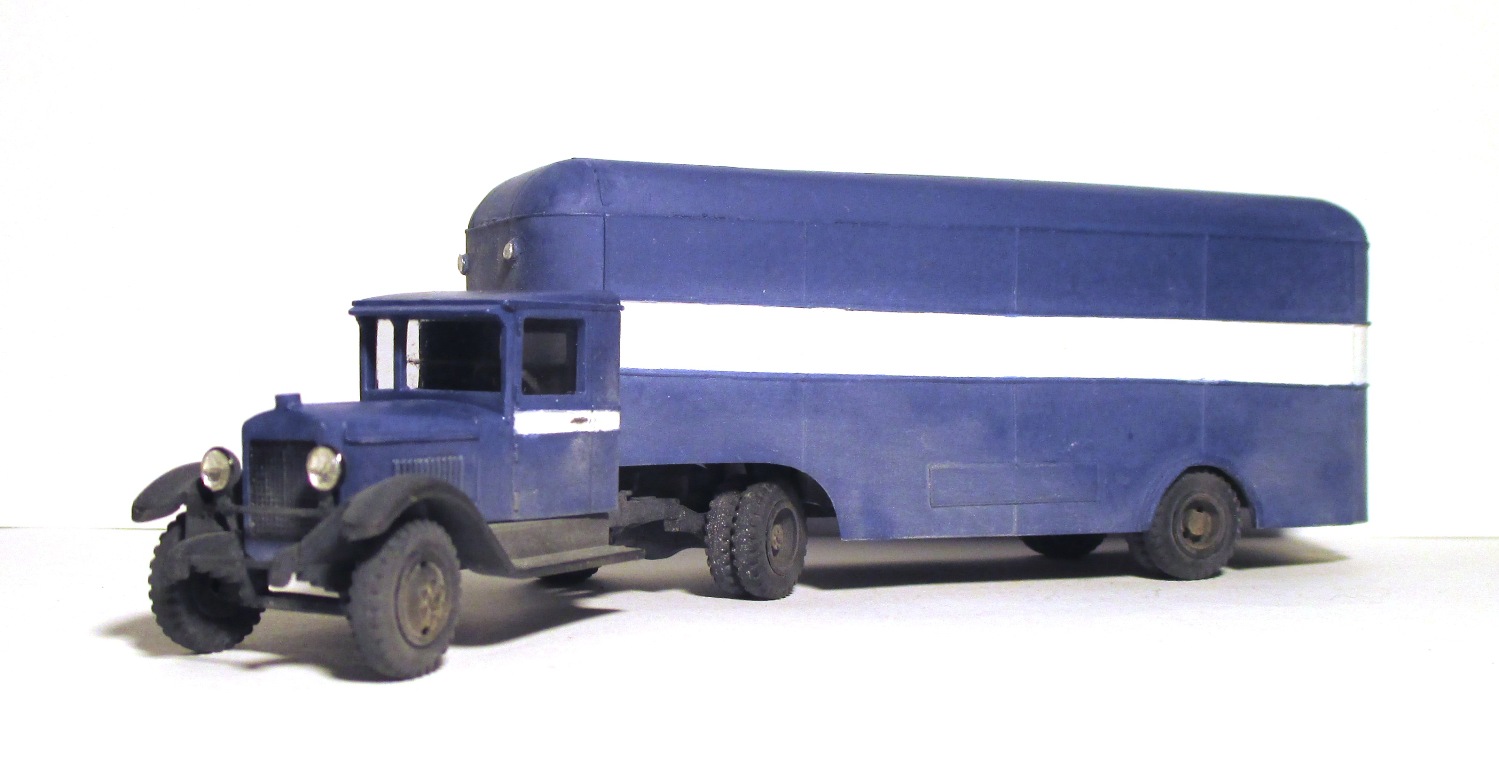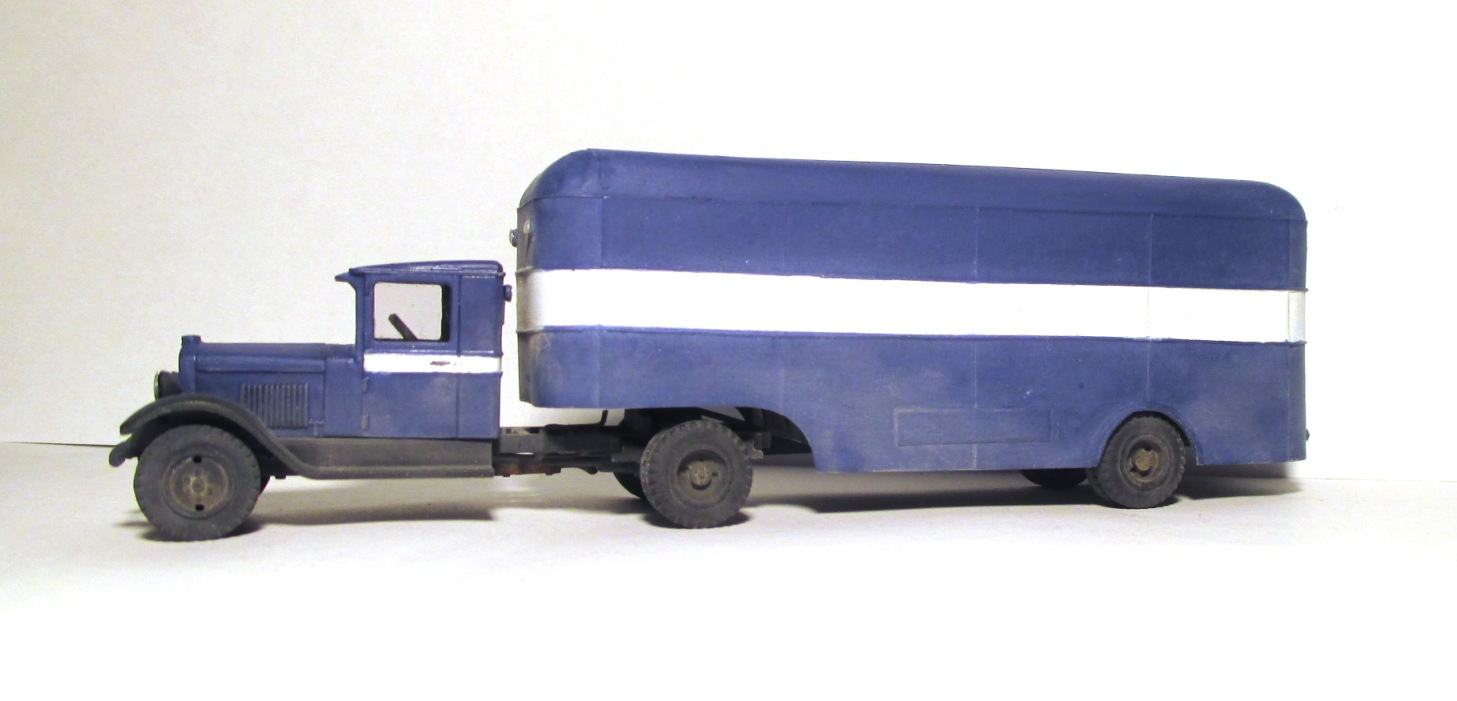 Моя попытка воссоздать по фотографии, опытный 5-тонный полуприцеп с кузовом «фургон» для тягача ЗИС-10.......................................