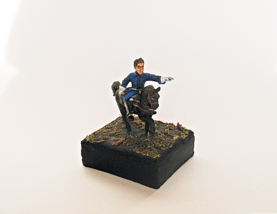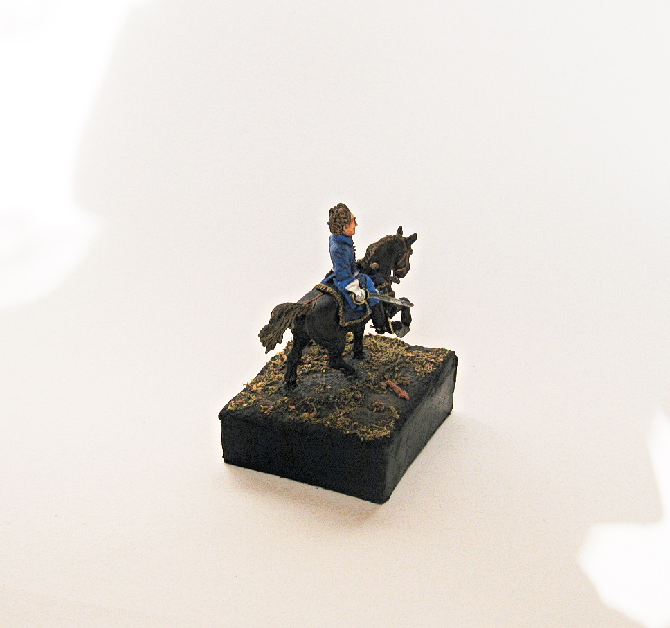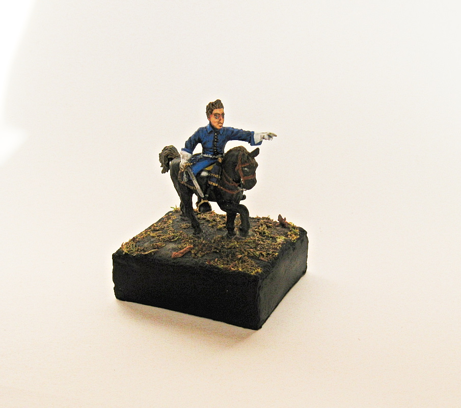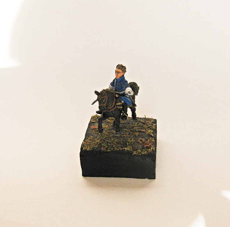 Здравствуйте. Давно лежала у меня эта маленькая фигурка. 28 мм, стиль Михаила очень узнаваем (ну кто сталкивался). Вот попробовал еще и коняшку (впервые) помалевать.