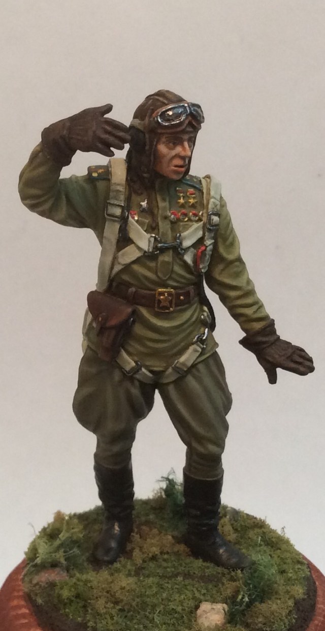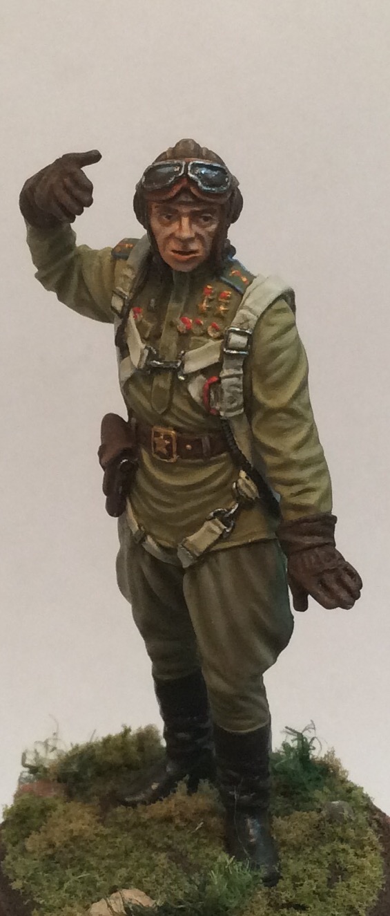 Почему не знаю, но именно с этой строкой из песни у меня ассоциируется эта фигура От ЕК Кастингс, скульптор Юрий Пятков. Олово 54 мм. Акрил, темпера ПВА. Работаю сразу с двумя летчиками. Фигуры в процессе