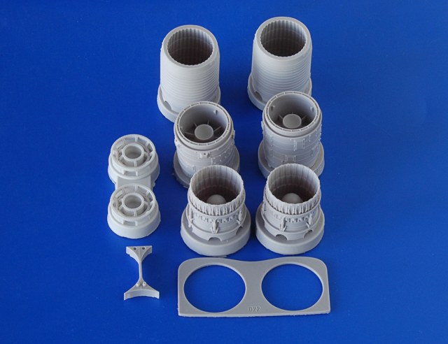 В привычной АМовской коробке дается инструкция по сборке и девять отливок из серой смолы превосходного качества. Собственно, отличие этого кита от набора для Су-17М в том, что все детали двигателя даны в двойном количестве, а кроме этого, дается две дополнительные детали: шпангоут и междвигательная перемычка. ( Та же картина, что и в 1/72: http://karopka.ru/community/user/9176/?MODEL=473464)