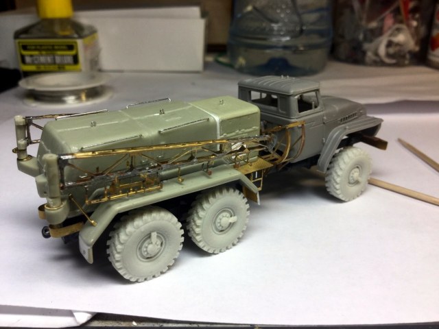 Первый мой серьезный опыт постройки автомобилей вообще, в 72 масштабе в частности. Делалось для аэродромного антуража, изначально запил не планировался, но в процессе я увлекся, уж очень интересный прототип, куча мелких деталей, есть где разгуляться.