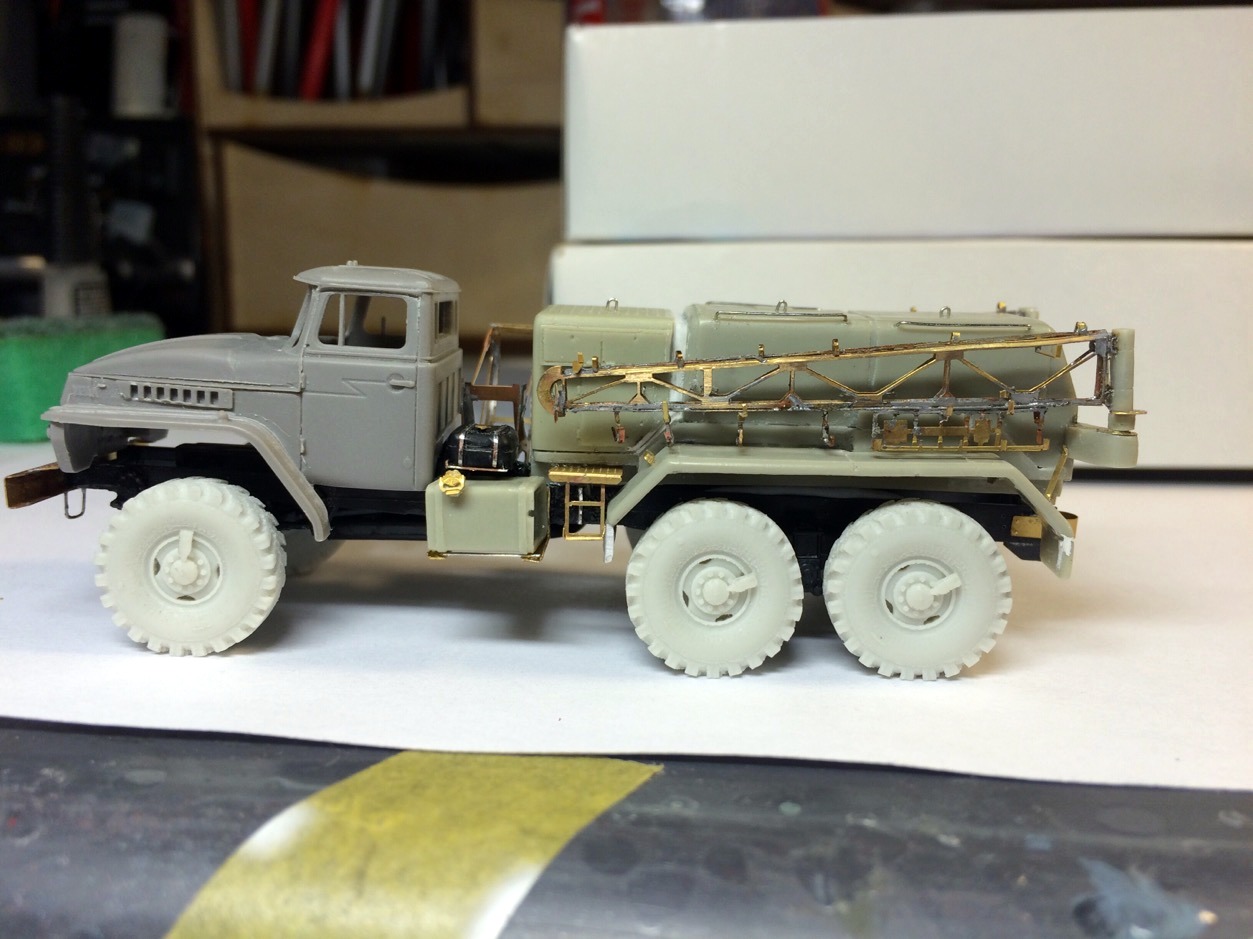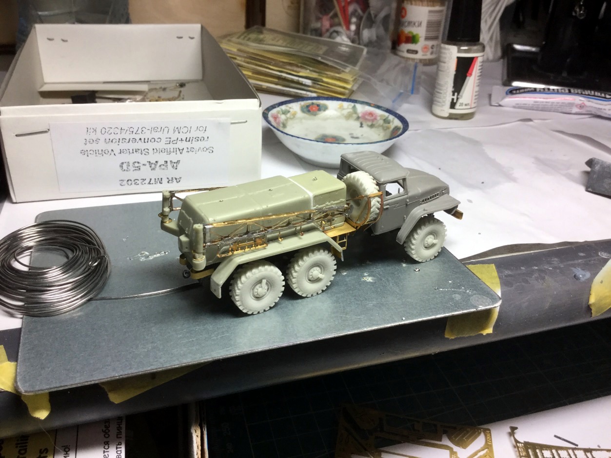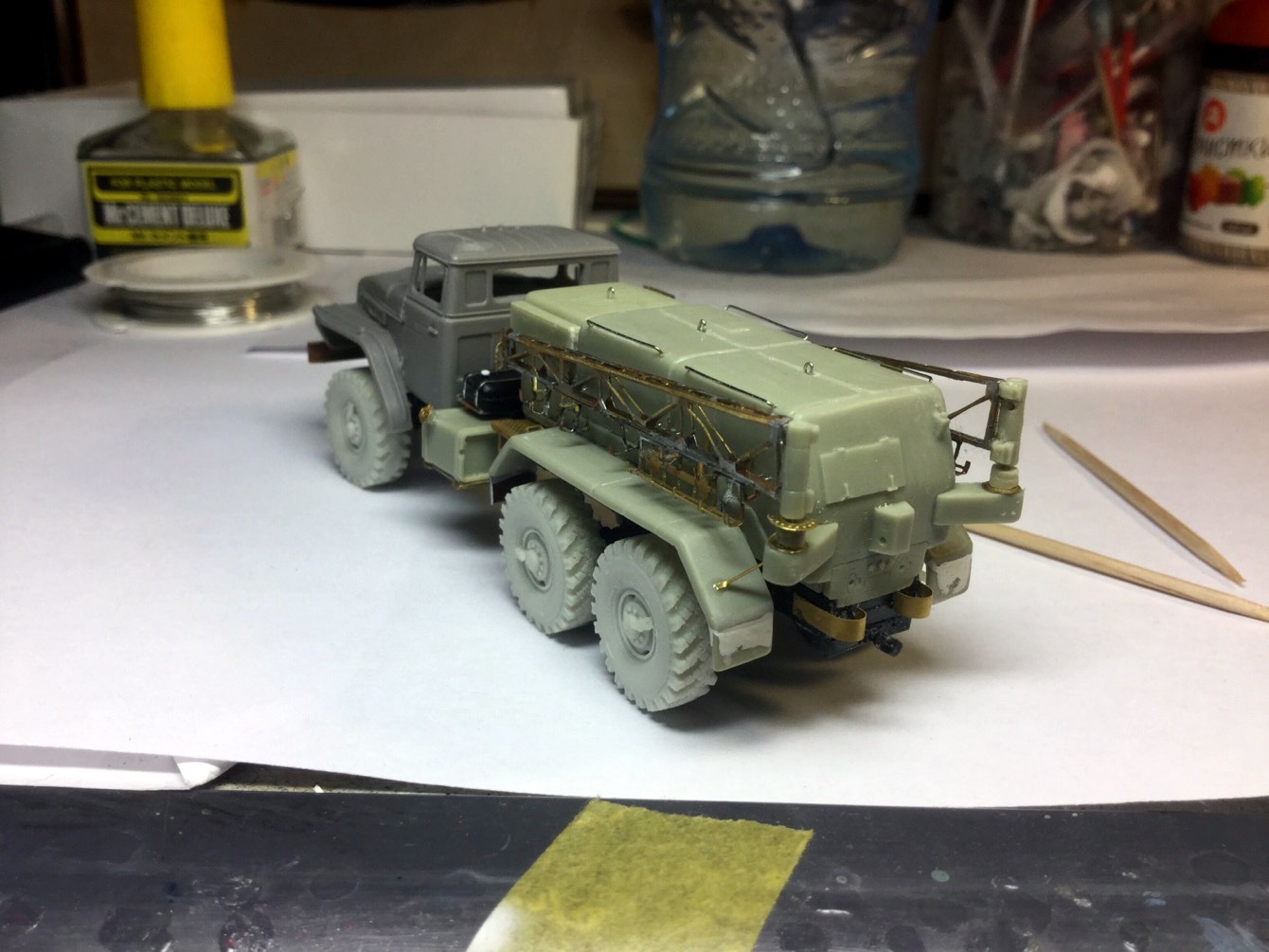 Красилось все красками Акан в три оттенка, цвет стандартный для армейских грузовиков (63011 Зелёно-защитный армейские автомобили Газ 66/УаЗ/Урал/ЗиЛ и т. д. Окраска кабин авто). Использовался прешейдинг и высветление. После долгих раздумий покрасил кабину и агрегат в один цвет, хотя многие из АПА имеют разную окраску, так как раму с кабиной делает один завод, а агрегат другой.