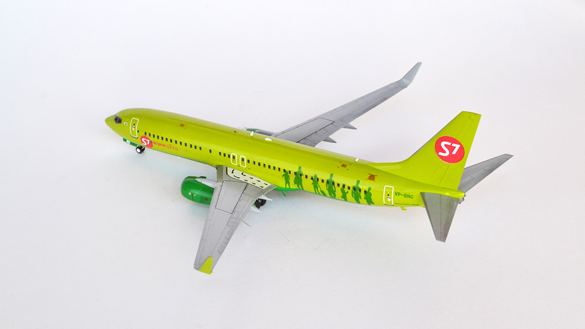 Модель строилась на заказ параллельно с зелёным А321. Химия Тамия, лак Футура, декаль от Ascensio. Рассверлил ВСУ и посадочные фары, в остальном - искоробка. Маячки от Эльфа.