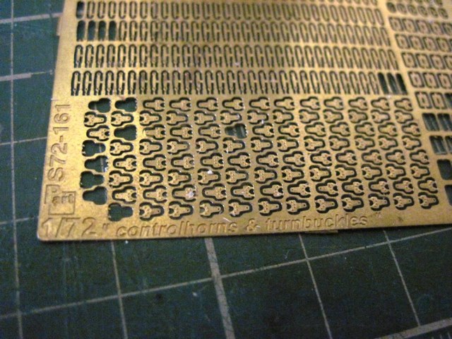 12. Тяга к прорезанному правому элерону - проволока 0,3 мм. Убрал неточность на модели, а именно зашпатлевал триммер на левом элероне, т.к. правый триммер был добавлен только с А-7БИС;