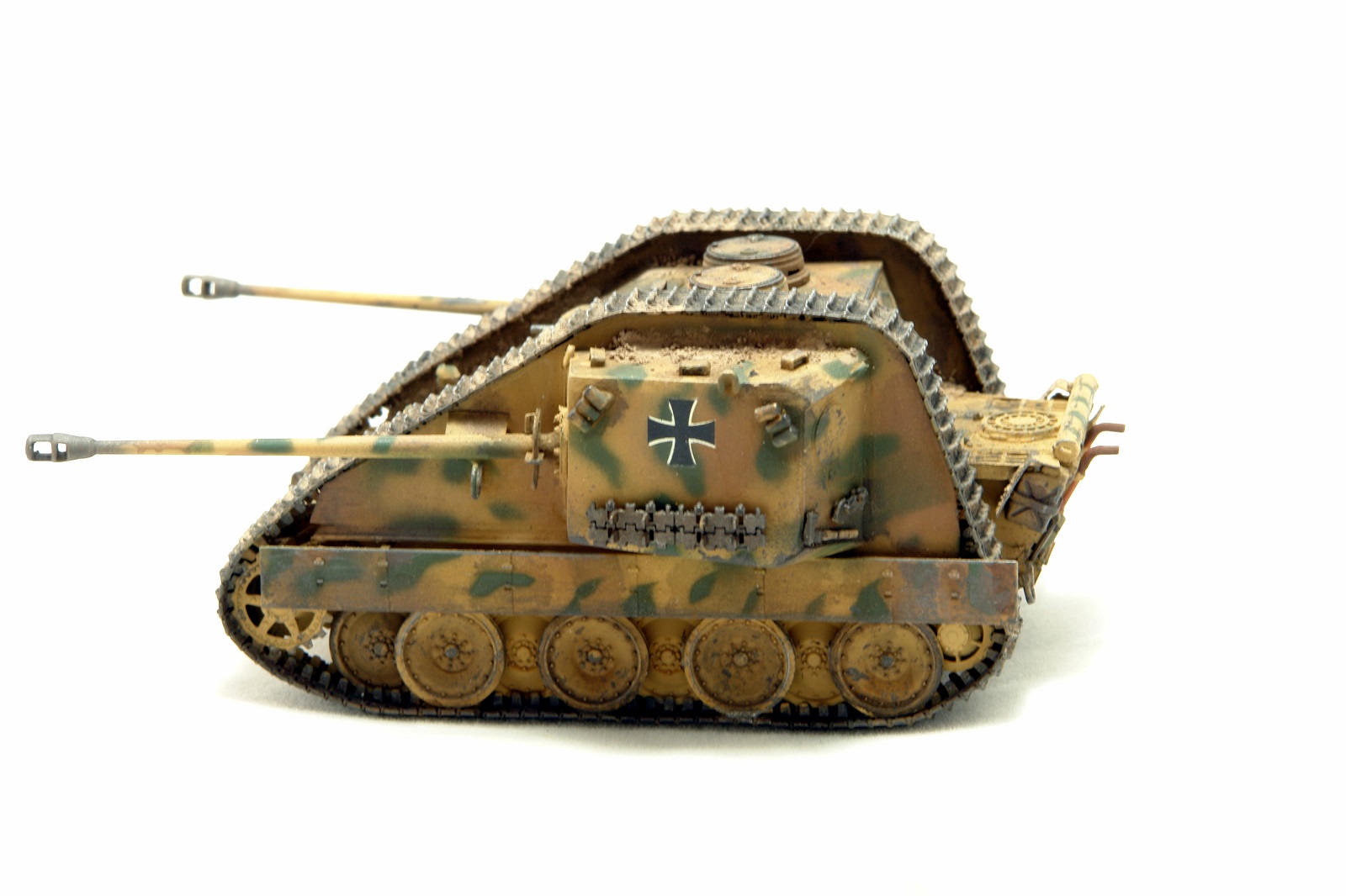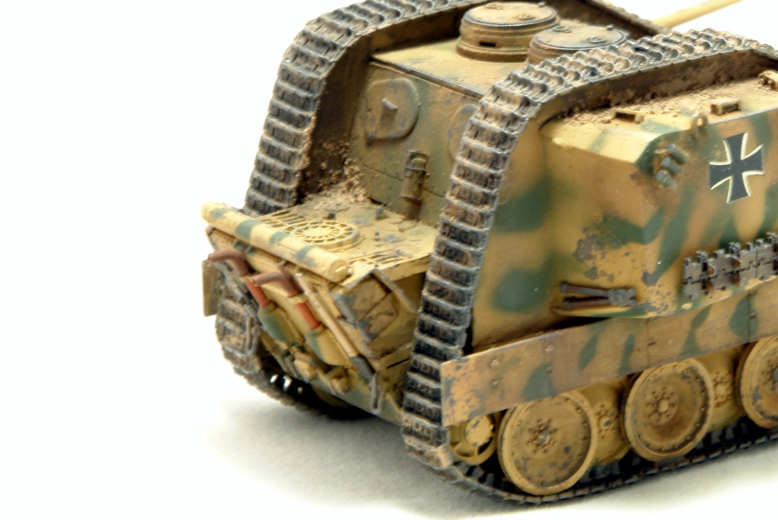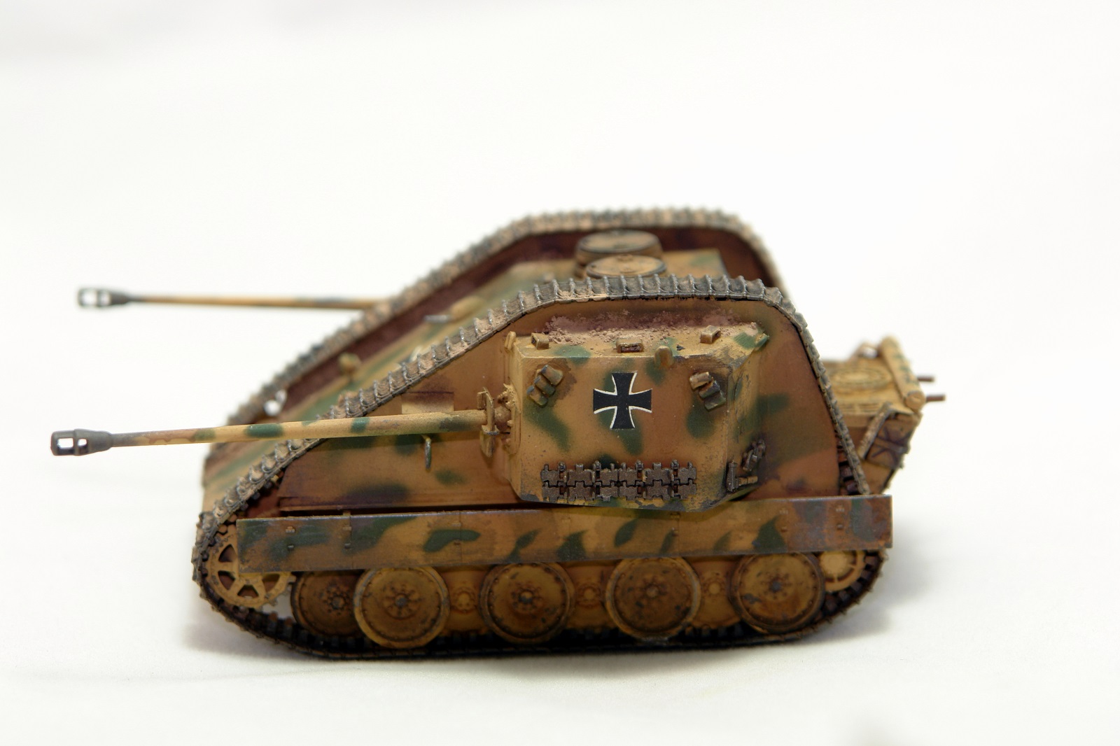 Классная конверсия, реалистичная "художка"! Но... есть вопрос: даже для версии ".. а что, если.."(what if)предполагается включение логики, ну типа: "этого не было, но могло бы быть", а здесь мы видим технически законченную ходовку Pz.V и совершенно не логичное и, я бы сказал "антифункциональное", удлинение верхней ветви гусениц. Как следствие - легкость повреждения большой площади гусянки встречным огнем и огромная не простреливаемая зона перед машиной из-за невозможности сведения орудий по горизонту. Адольф Алоизыч, наверное, за такое приказал бы шлёпнуть конструктора)))