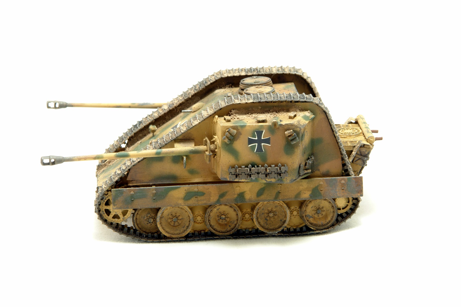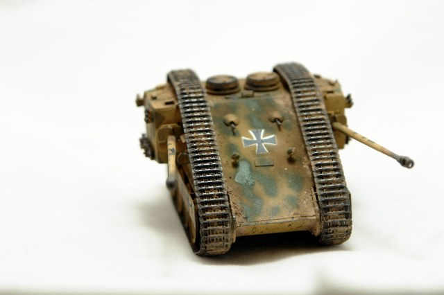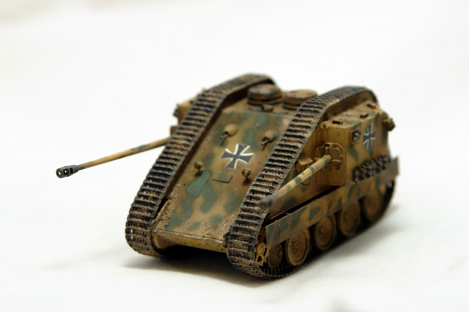 Классная конверсия, реалистичная "художка"! Но... есть вопрос: даже для версии ".. а что, если.."(what if)предполагается включение логики, ну типа: "этого не было, но могло бы быть", а здесь мы видим технически законченную ходовку Pz.V и совершенно не логичное и, я бы сказал "антифункциональное", удлинение верхней ветви гусениц. Как следствие - легкость повреждения большой площади гусянки встречным огнем и огромная не простреливаемая зона перед машиной из-за невозможности сведения орудий по горизонту. Адольф Алоизыч, наверное, за такое приказал бы шлёпнуть конструктора)))