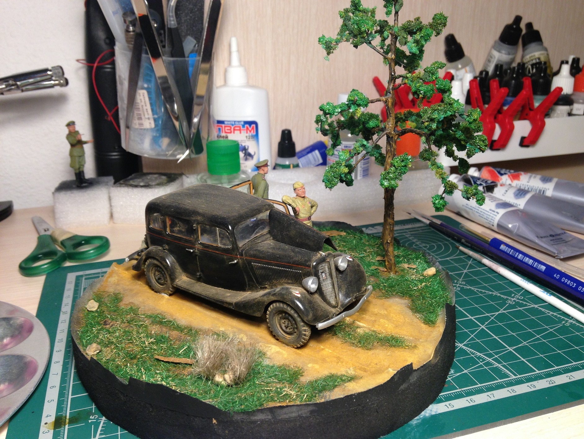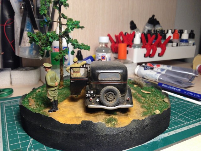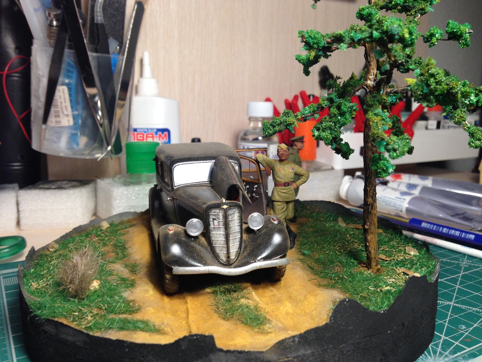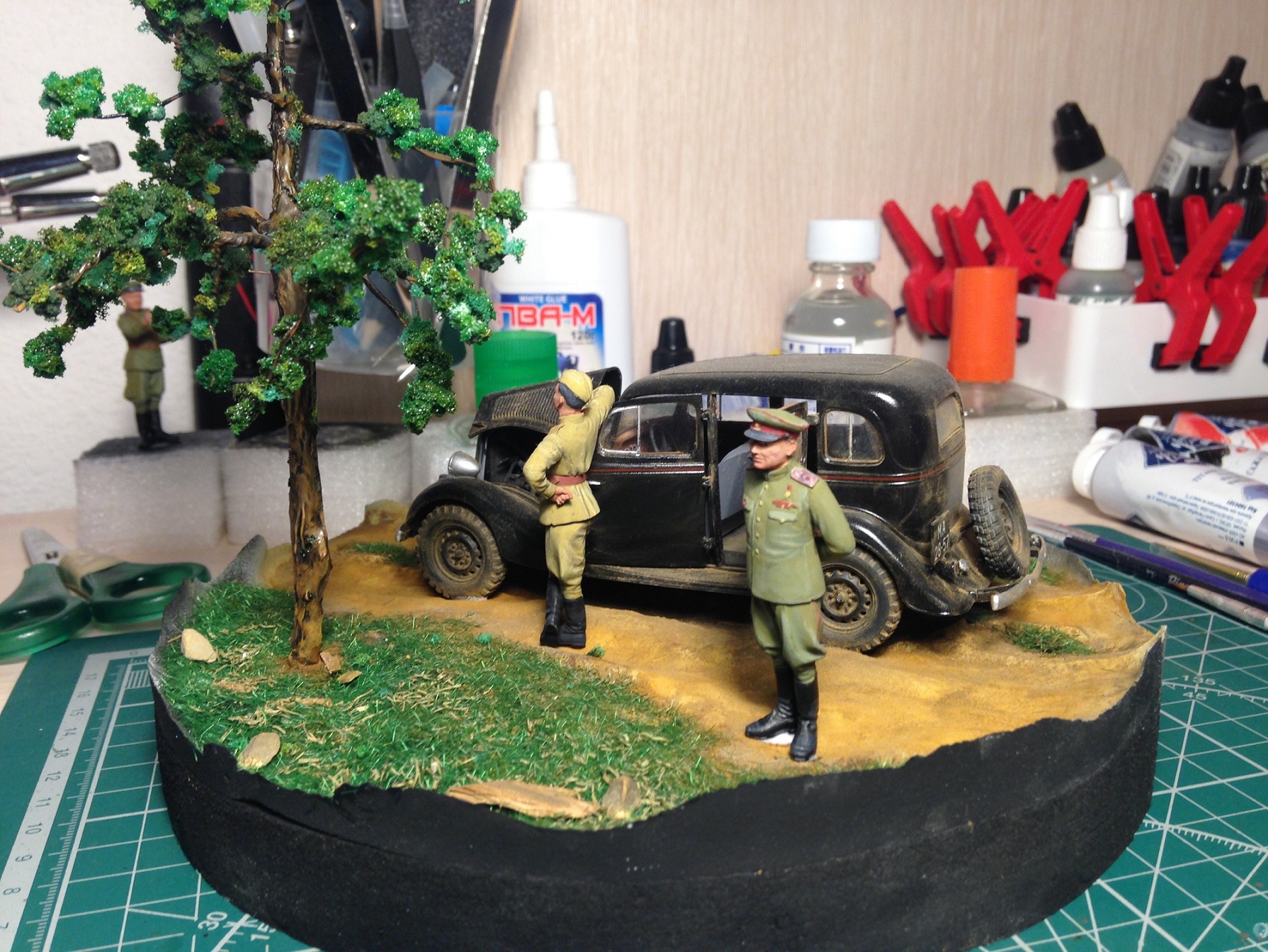 Диорама под название Ремонт в дороге, газ м1 и солдаты звездовский набор, собиралось все легко и просто)