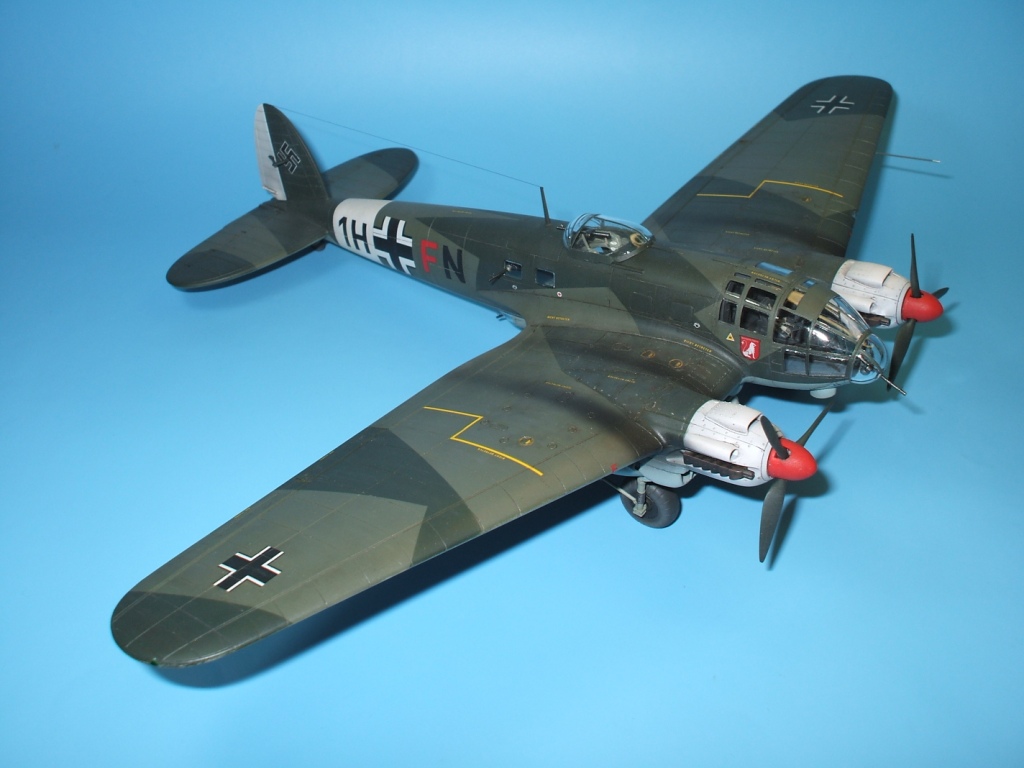 Сегодня хочу предоставить вашему вниманию модель немецкого среднего бомбардировщика He-111H-6 от Revell ( перепак Hasegawa). О прототипе рассказывать смысла не вижу, самолет очень известный и информации по нему в открытом доступе более чем предостаточно. Модель Не-111 от Hasegawa, тоже далеко не новинка, со своими плюсами и минусами. Что можно сказать о модели, модель не плохая - хорошая деталировка, превосходное литьё, прекрасная декаль, а благодаря фирме Revell еще и доступная по цене. Из минусов, что в первую очередь бросается в глаза, так это довольно широкий и глубокий расшив, не свойственный этому производителю и уж больно примитивно выполненные мелочи – интерьер, ниши и стойки шасси, колеса, стрелковое вооружение, элероны просто чудо – не поймешь что производитель хотел показать, толи провис, то ли киперные ленты. В общем, модель разительно отличается от ближайших своих собратьев, таких как Ju-88/188 и В-26, выпущенных этим же производителем примерно в тоже время. Если честно, где то глубоко в душе теплилась надежда на AIRFIX, но после появления фиксовской новинки иллюзии исчезли. Да, сделана отдельно механизация крыла, да, чего то кинули в фюзеляж по интерьеру… , а в остальном практически ничего не изменилось.