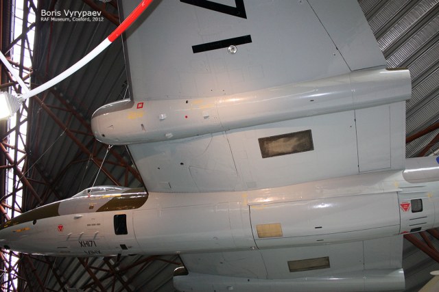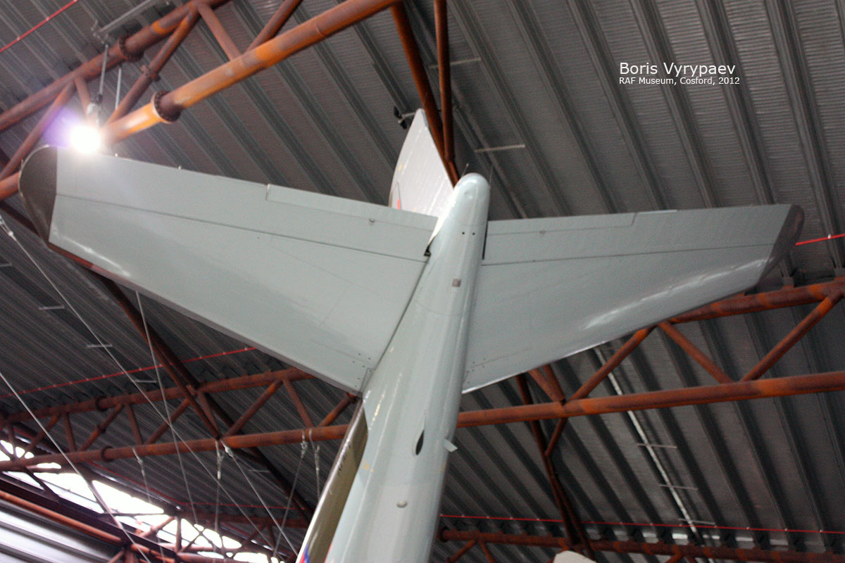 Очень не удобный для обзора экспонат: подвешен под потолком, затенён другими самолётами, висящими рядом, подходов на уровне самолёта нет (у подвешенного таким же образом "Джавелина" рядом хотя бы балкончик есть).