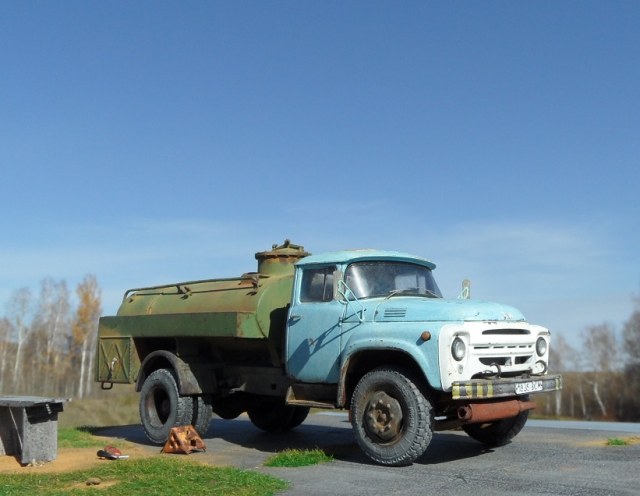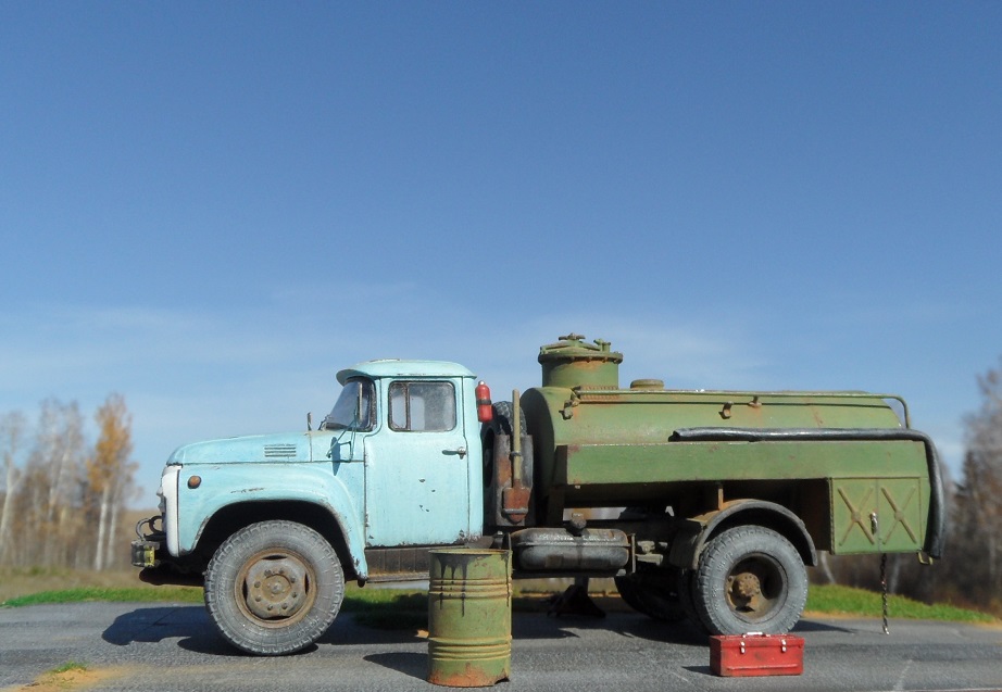 АТЗ-3,8-130 предназначен для механизированной заправки самолётов и вертолётов фильтрованным топливом плотностью не более 0,86 г/см3. Относится к категории заправщиков малой вместимости. Модель имеет смоляные детали- бочка и поручни, глушак и держатель кронштейн запасного колеса.Так же дан дополнительный редуктор и кордан, отлиты они так же качественно как и на АПА, стыковка не доставила проблем, все легко встает на места. Из доработок цепь, зеркала и дворники от Петрограда и по мелочам. Радует что AVD Models уделило внимание именно аэродромной технике, теперь вот такой Зил можно поставить к вертолету или небольшому самолету в 48 масштабе! Окрашена эмалью мотип. Приятного просмотра!