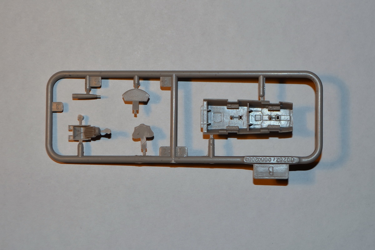 Набор содержит один большой литник с мелочёвкой, один маленький с ванной кабины, приборками и одним из кресел, и прозрачный литник. Половинки фюзеляжа и крыло даны отдельными деталями, не прикреплёнными ни к одному из литников.