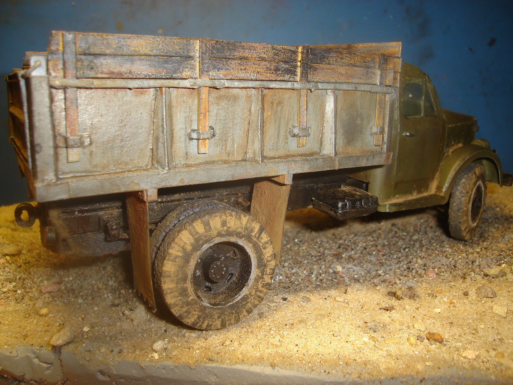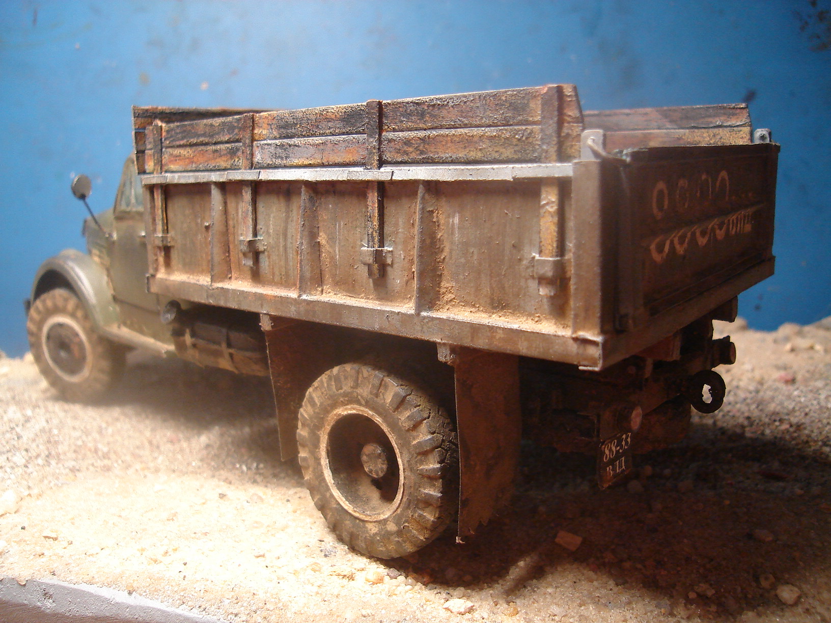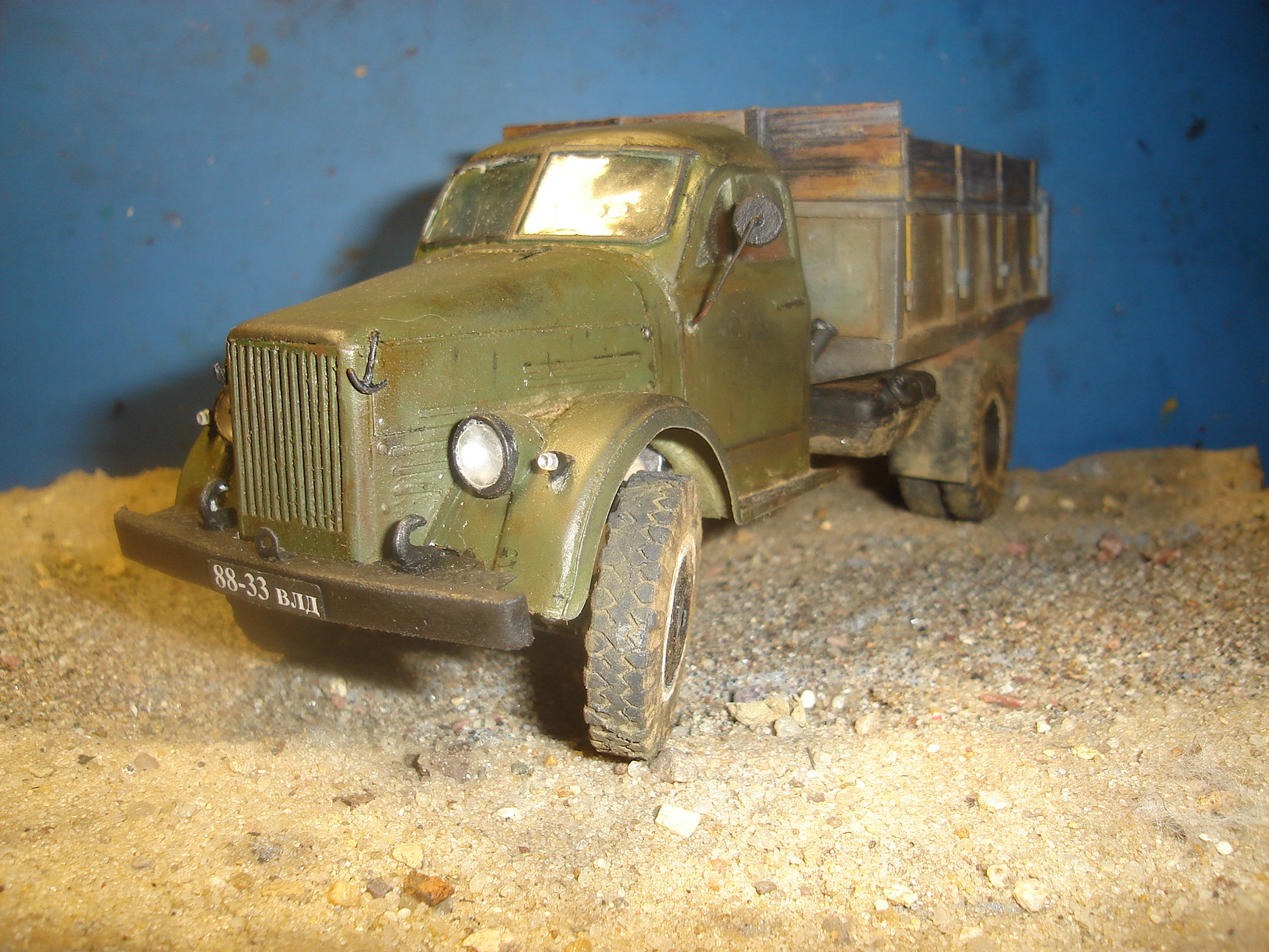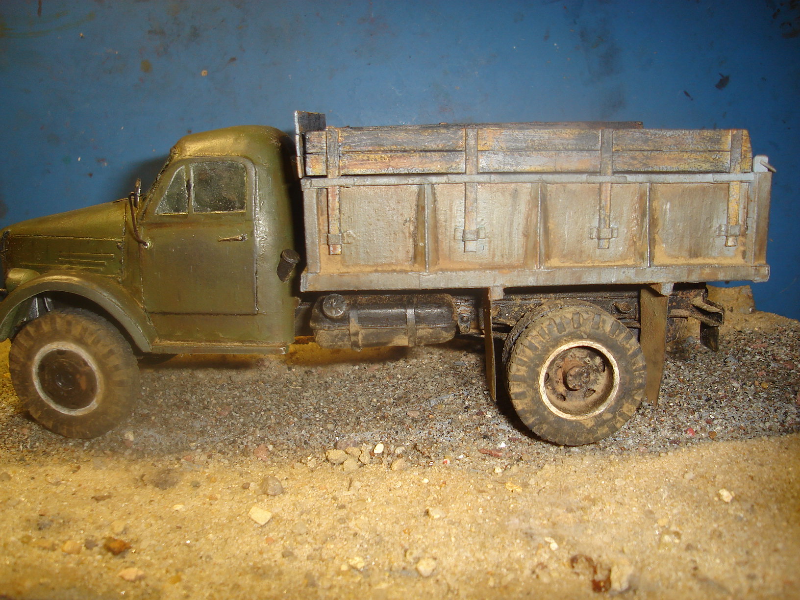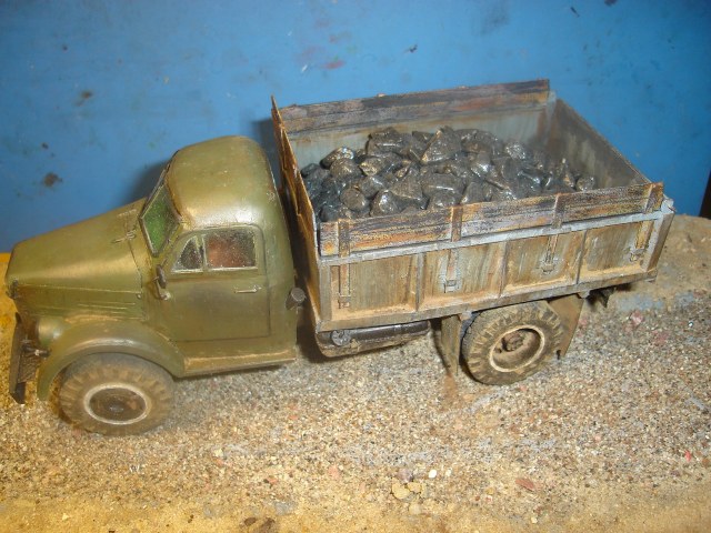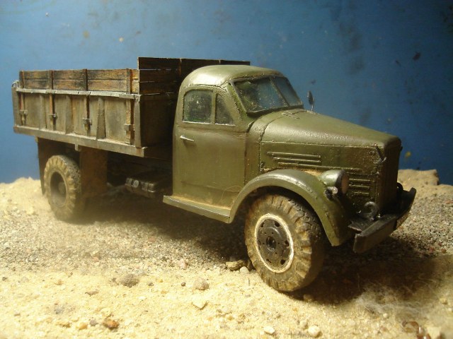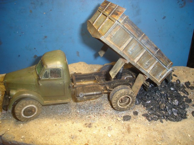 ГАЗ-самосвал на базе ГАЗ-51. Материал - бумага. Масштаб 1:25. Кабина, рама и колёса от разных разработчиков. Кузов - собственная разработка.