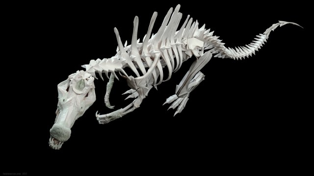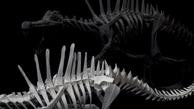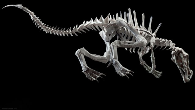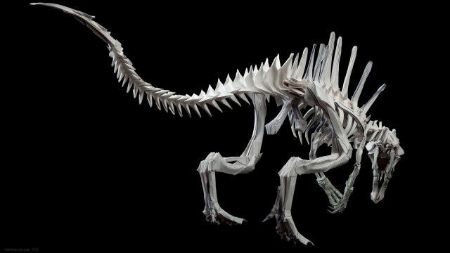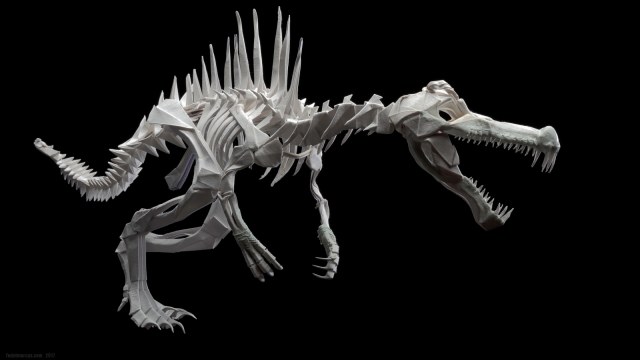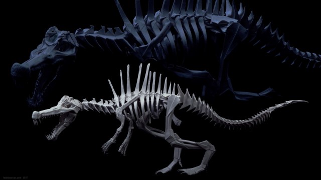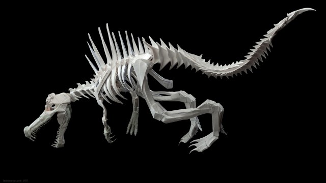 Скульптура двуногого крокодила под названием Spinosaurus стала источником новых технологических идей и экспериментов. Результаты получились любопытные. По цифрам данная работа состоит: