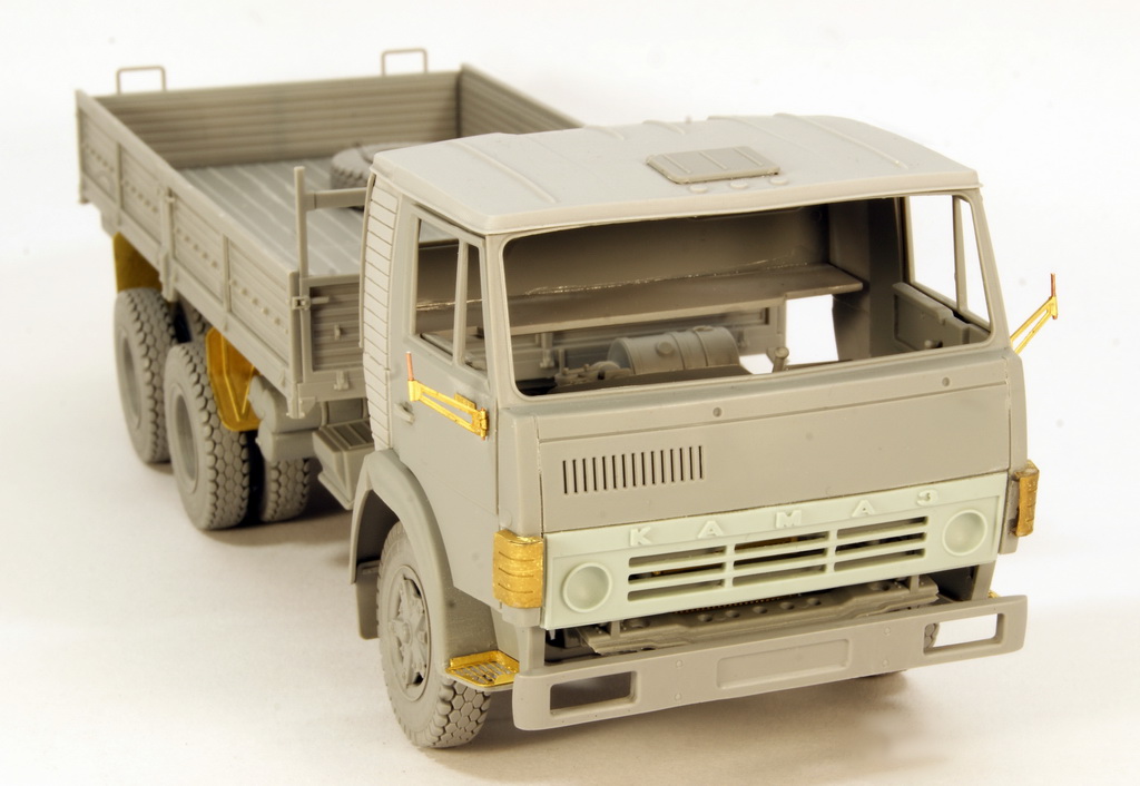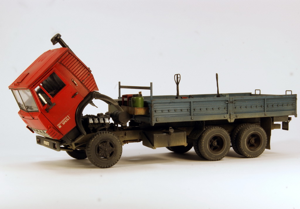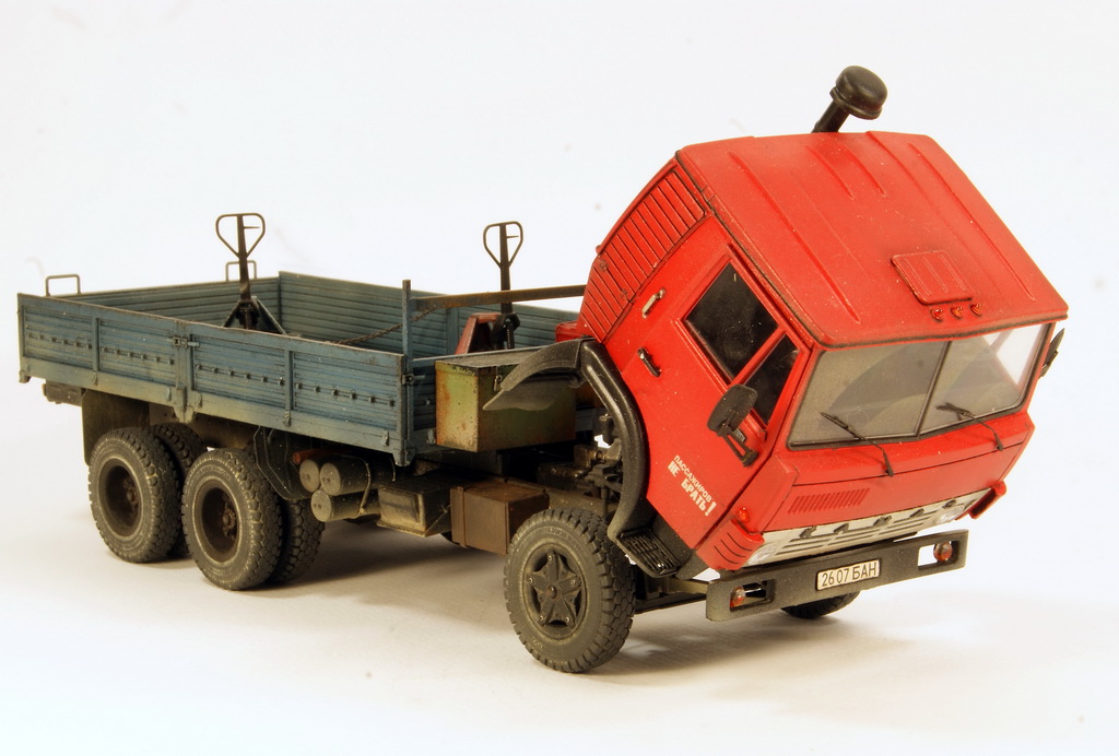 Модель вышла неплохо. Но у 5320 кабина без спальника! Производители наборов почему-то обходят 5320 стороной, нет "первенца" КАМАЗА! А навороченные пожалуйста... С уважением