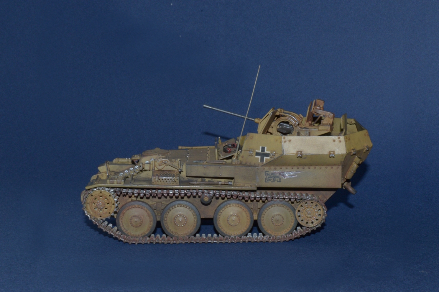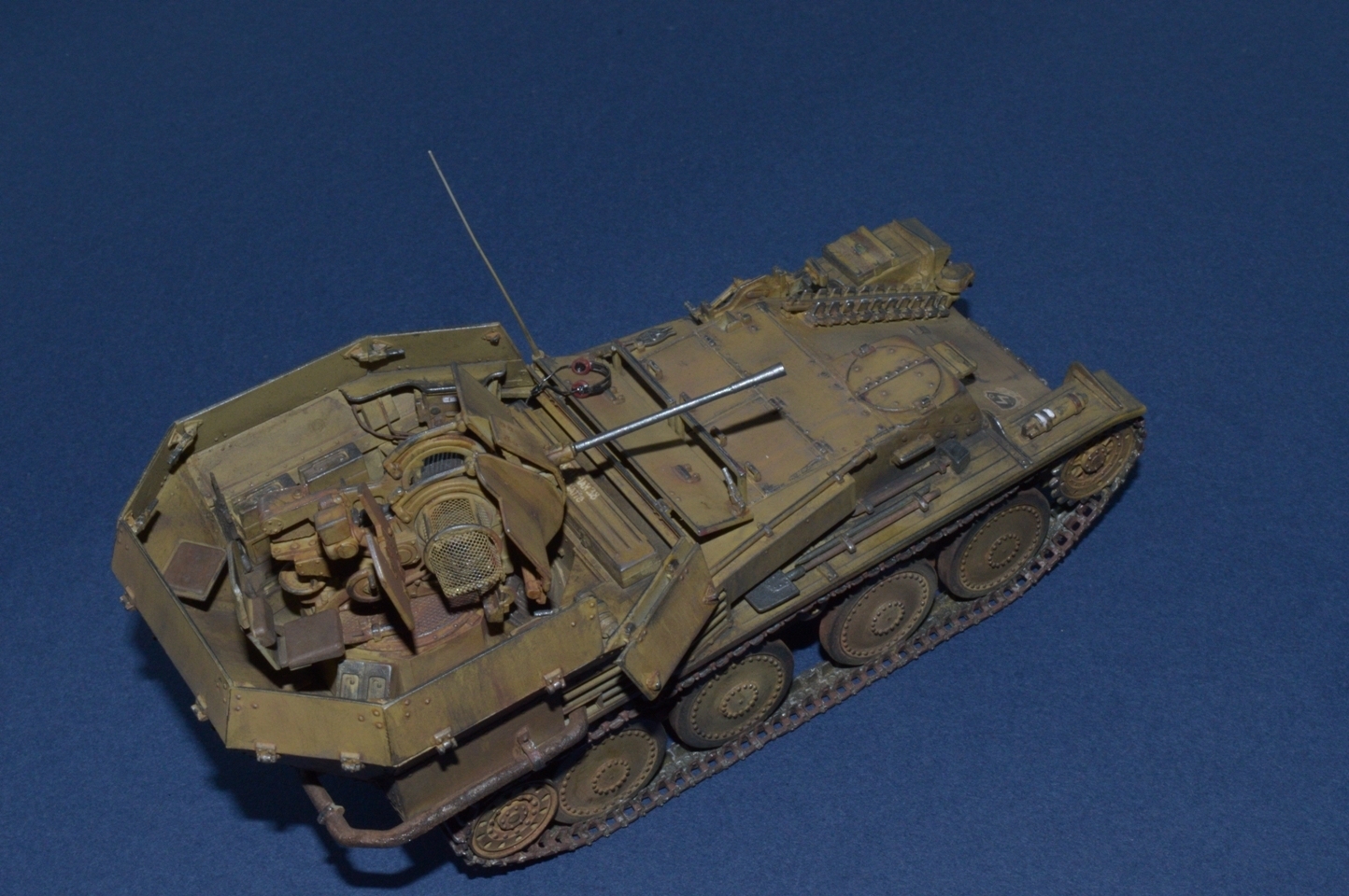 А мне, учитывая исходник, модель понравилась. Аккуратная сборка. Реалистичный износ. Из придиризмов только, по-моему неправильно надеты гусеницы и базовый цвет чересчур ушел в зелень.