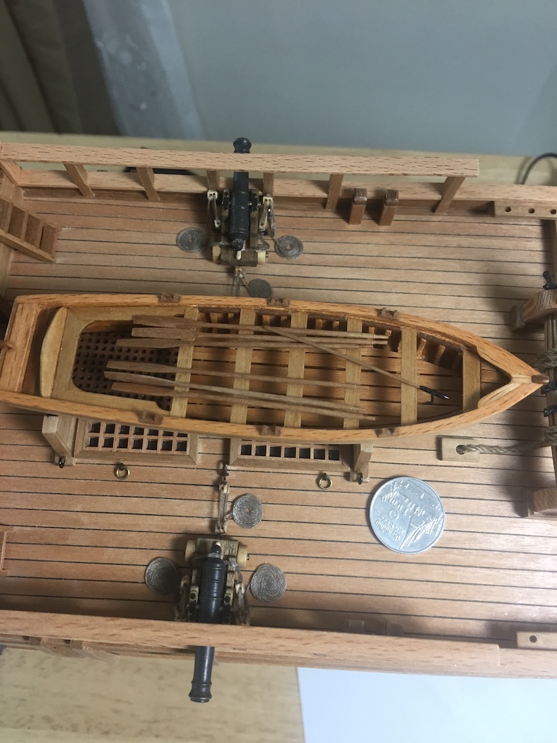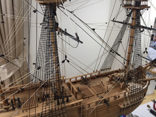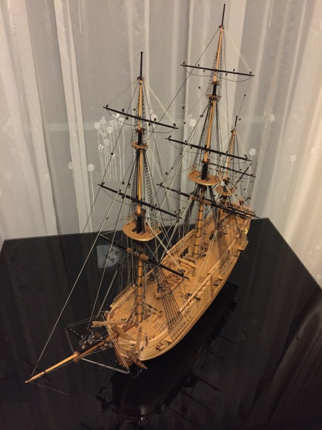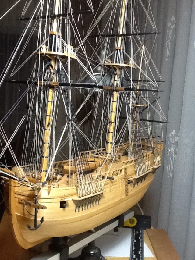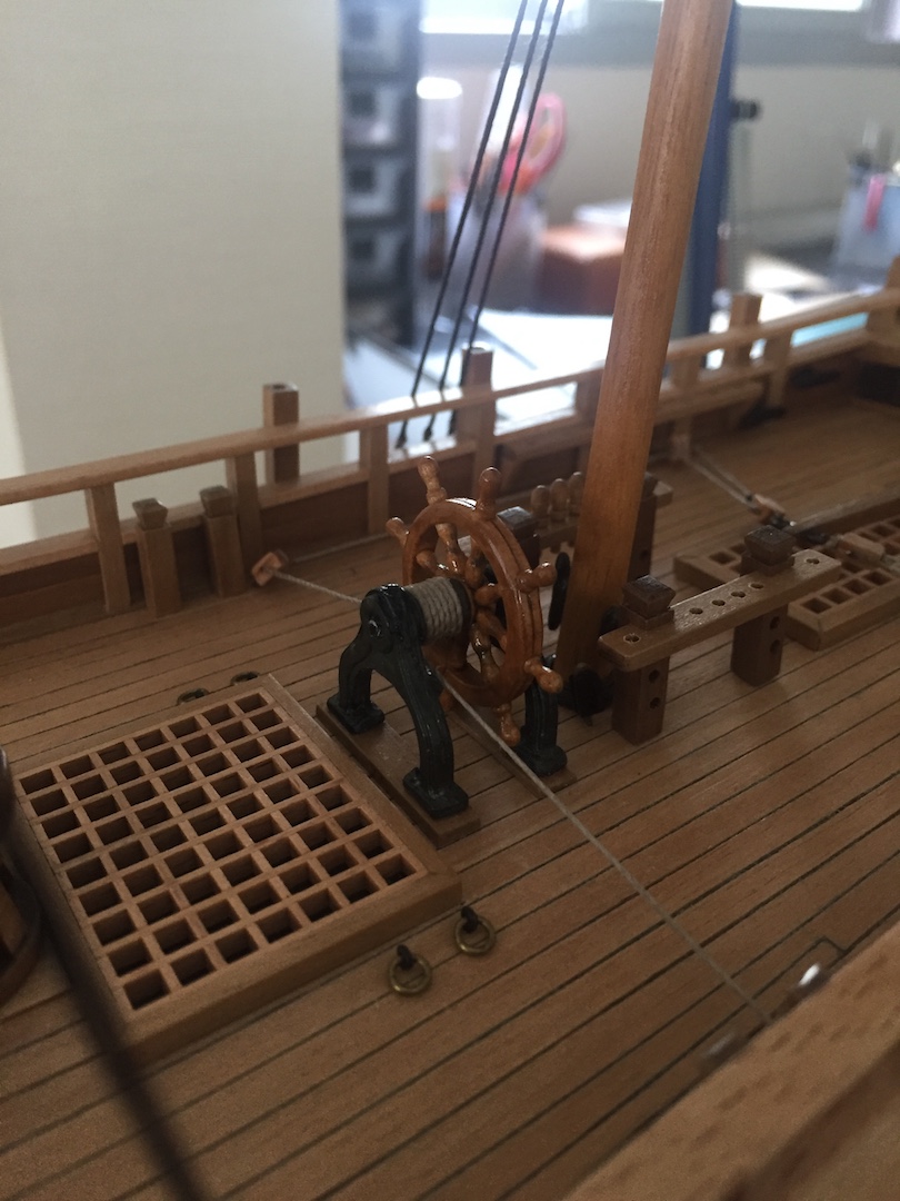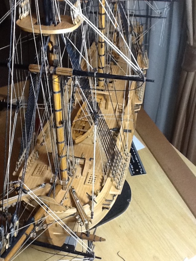 Кук бы мне самолично голову отрубил за это произведение. Первые поползновения в точности скопировать известный угольщик разбились о непробиваемую стену лени. Так что, с дистанции 5-10 метров барк похож на реальный "Индевор", но не ближе. Покраска минимальна, поскольку ценные породы дерева (в основном, орех) не хотелось лишать прелести оттенков. С этими "ценными породами" - одна головная боль, потому что огрехи под краску не спрячешь и не зашпаклюешь. Завершил стройку в октябре 2016 года (делал 3 года с полугодовыми перерывами). Всем очень нравится, потому что они не знают....