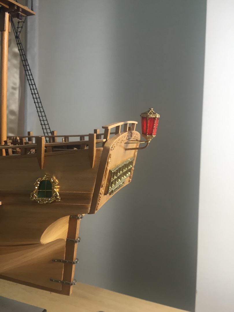 что-то меня последнее время тоже парусники влекут... а окраски тут как раз не хватает, как ни парадоксально звучит - дерево не натурально выглядит) в смысле кораблю оттенки другие нужны, может стоило бы попробовать лак потемнее?